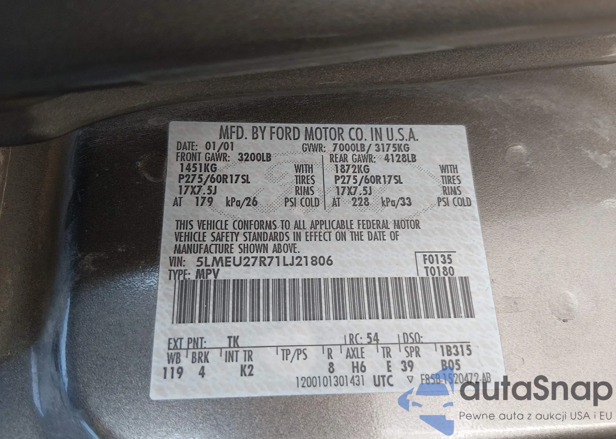 • VIN 5LMEU27R71LJ21806