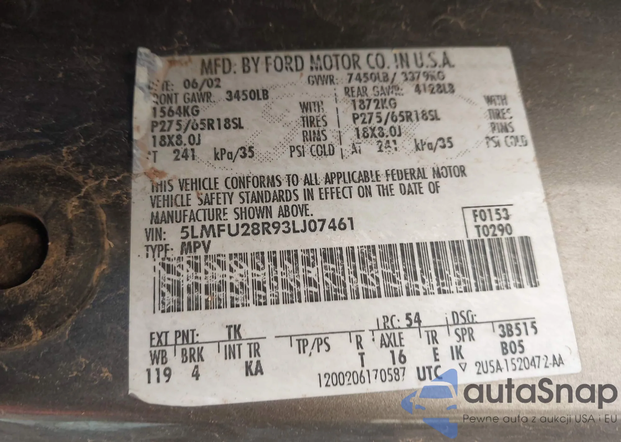 • VIN 5LMFU28R93LJ07461