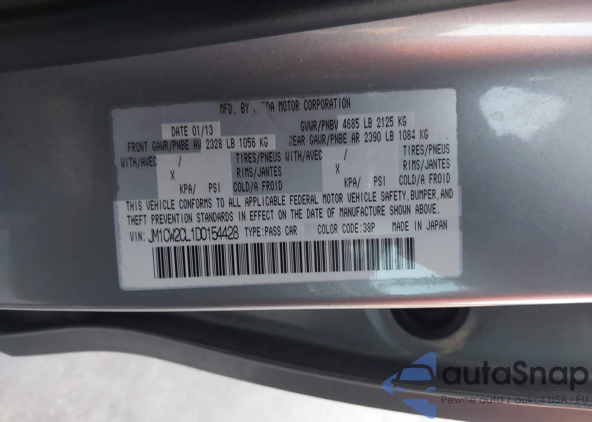LOT: 43804435 VIN: JM1CW2CL3D0148940