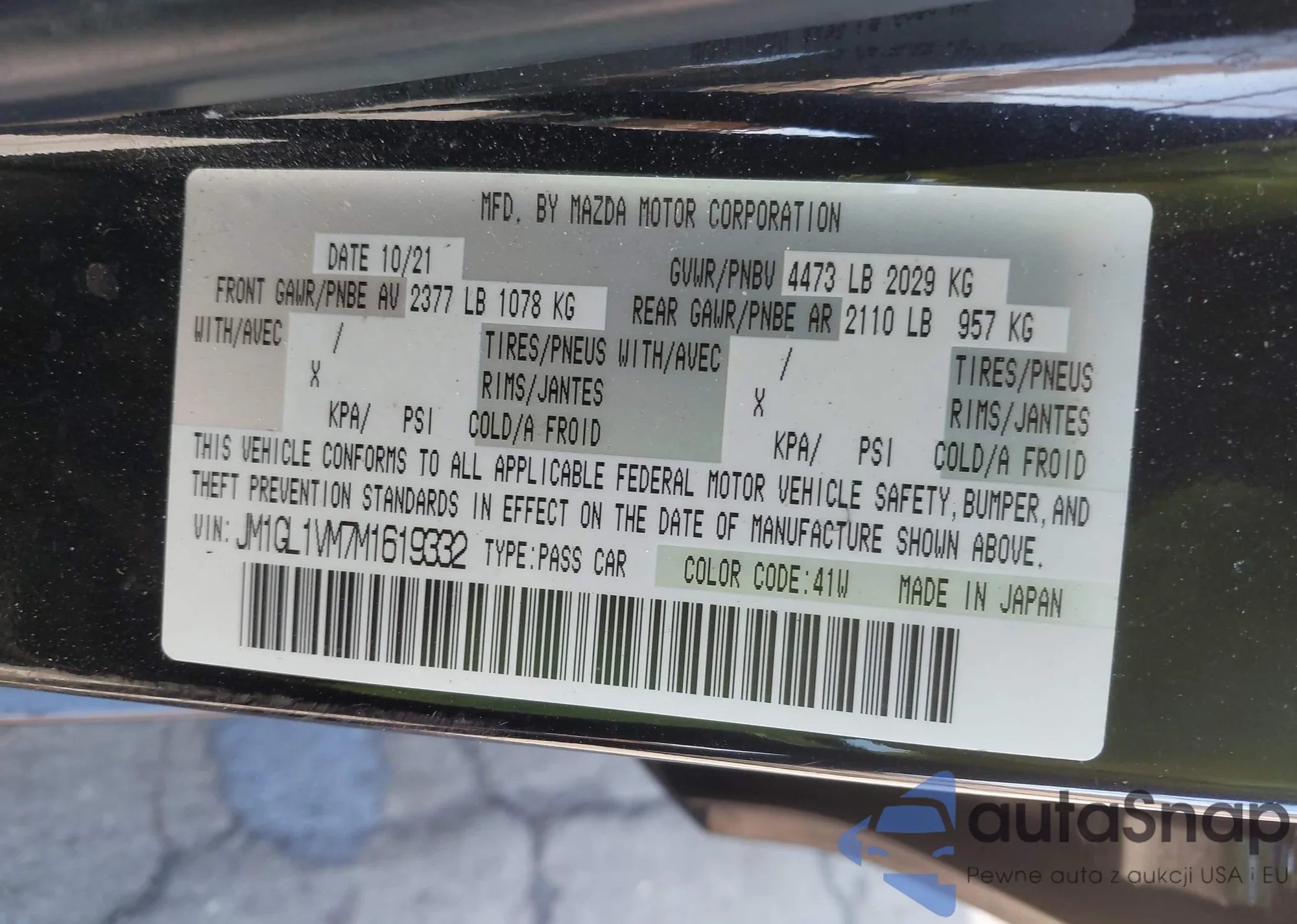 LOT: 44323761 VIN: JM1GL1VM7M1619332
