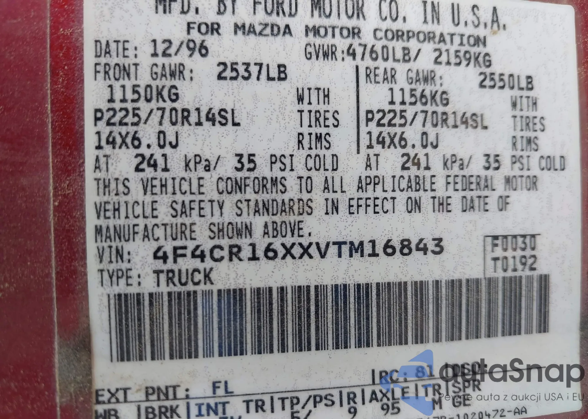 • VIN 4F4CR16XXVTM16843
