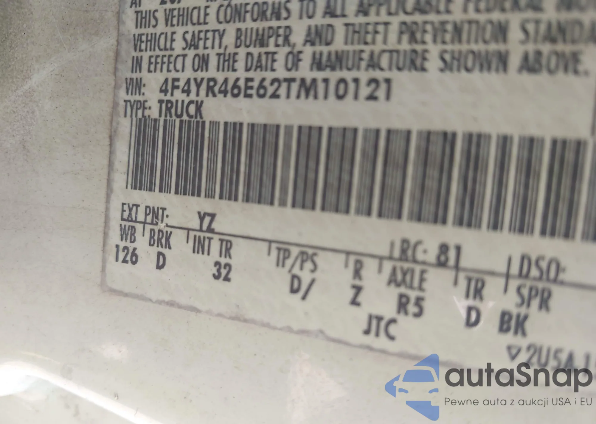 • VIN 4F4YR46E62TM10121