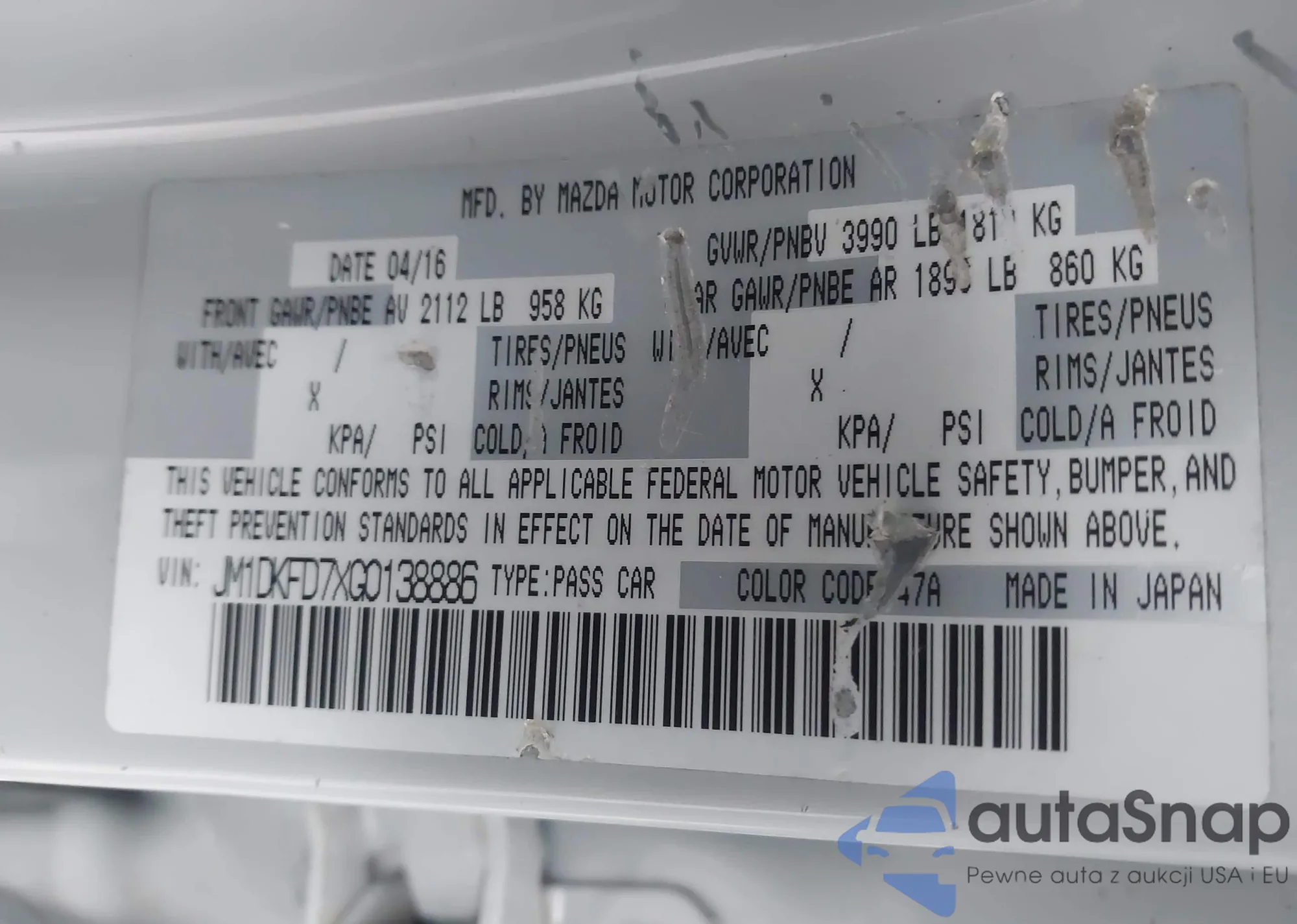 LOT: 43818931 VIN: JM1DKFD7XG0138886