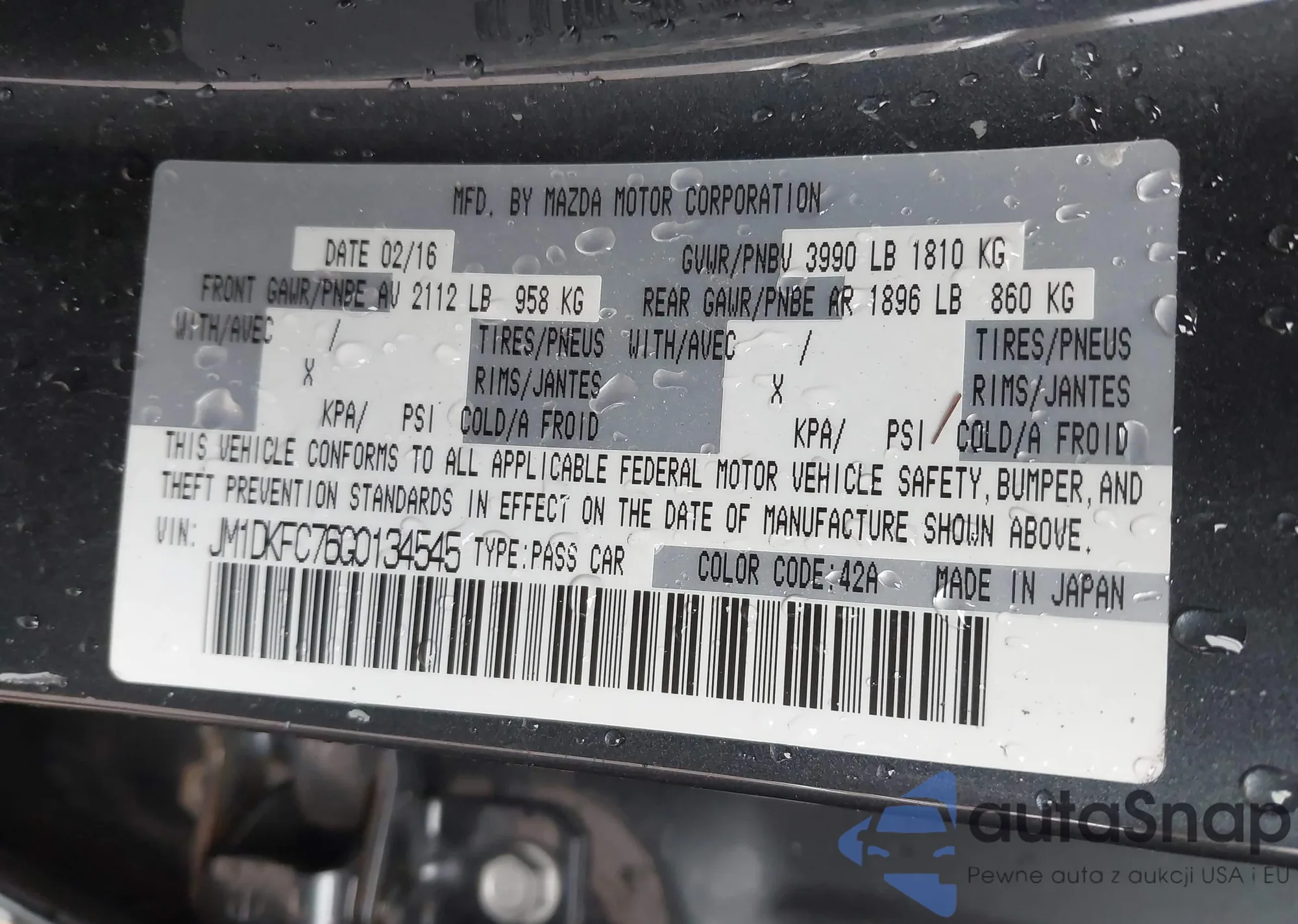 LOT: 70646275 VIN: JM1DKBD78G0116300