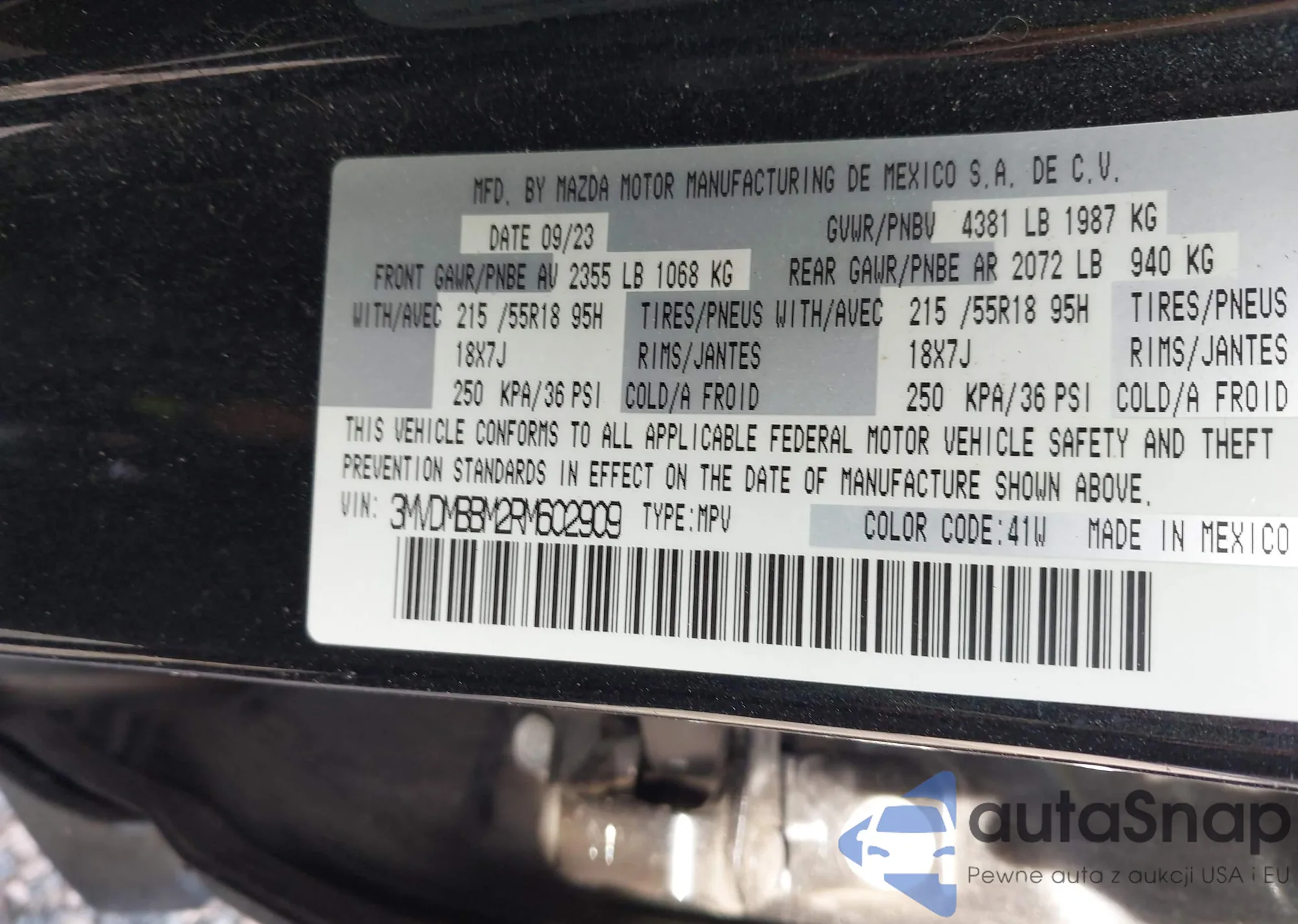• VIN 3MVDMBCM5RM650239