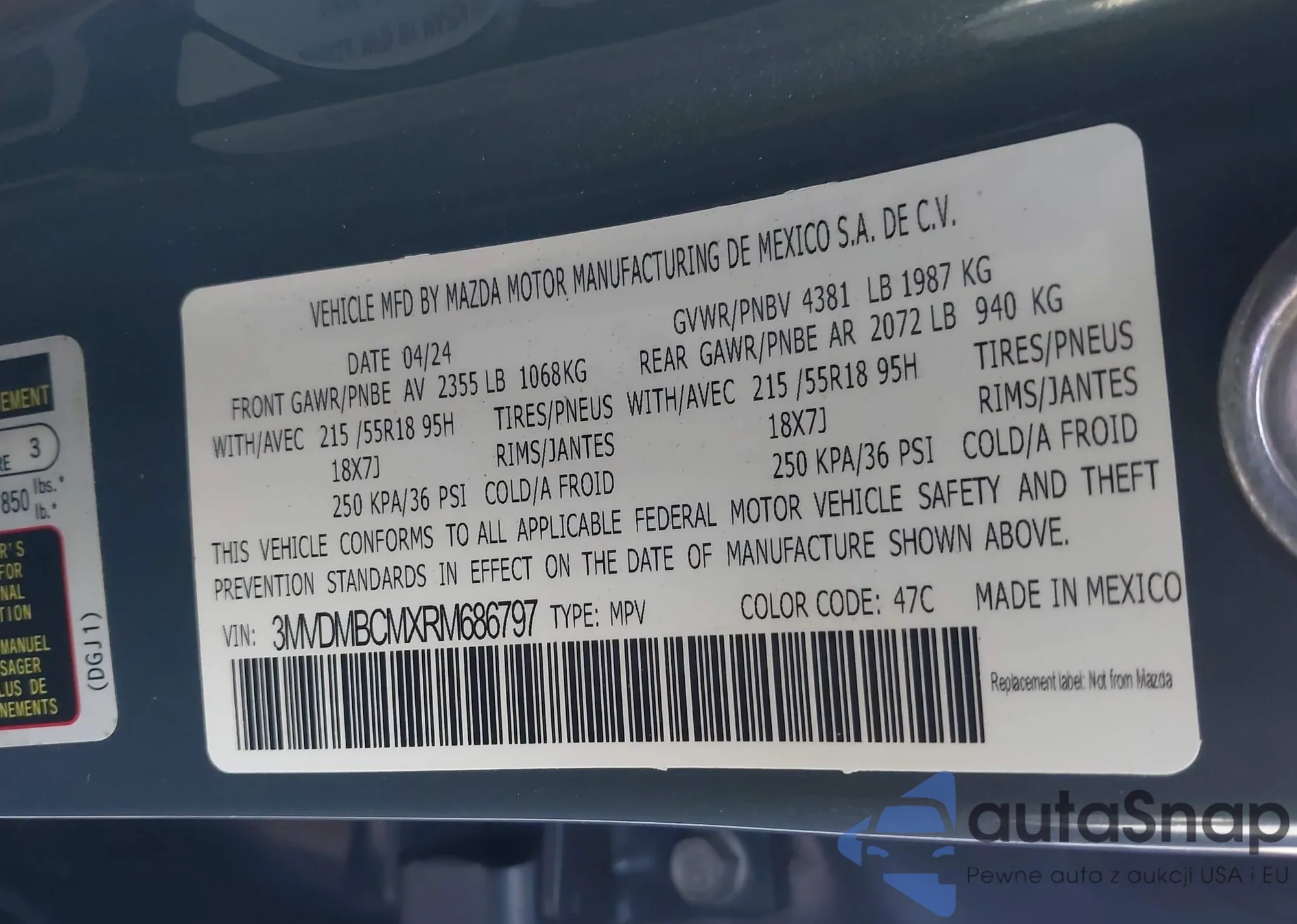 • VIN 3MVDMBCL5NM406916