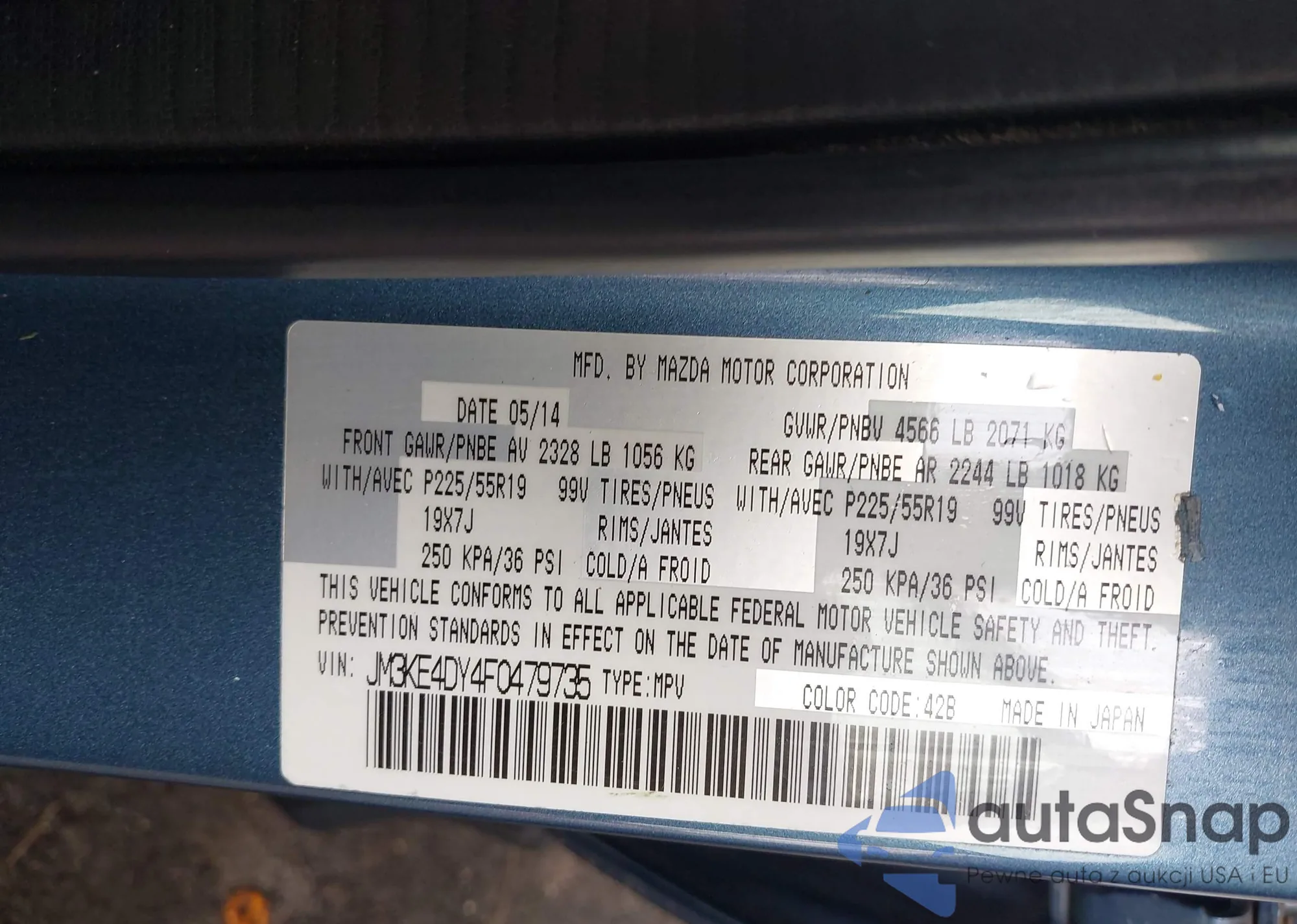 LOT: 40032198 VIN: JM3KE4DY4F0479735