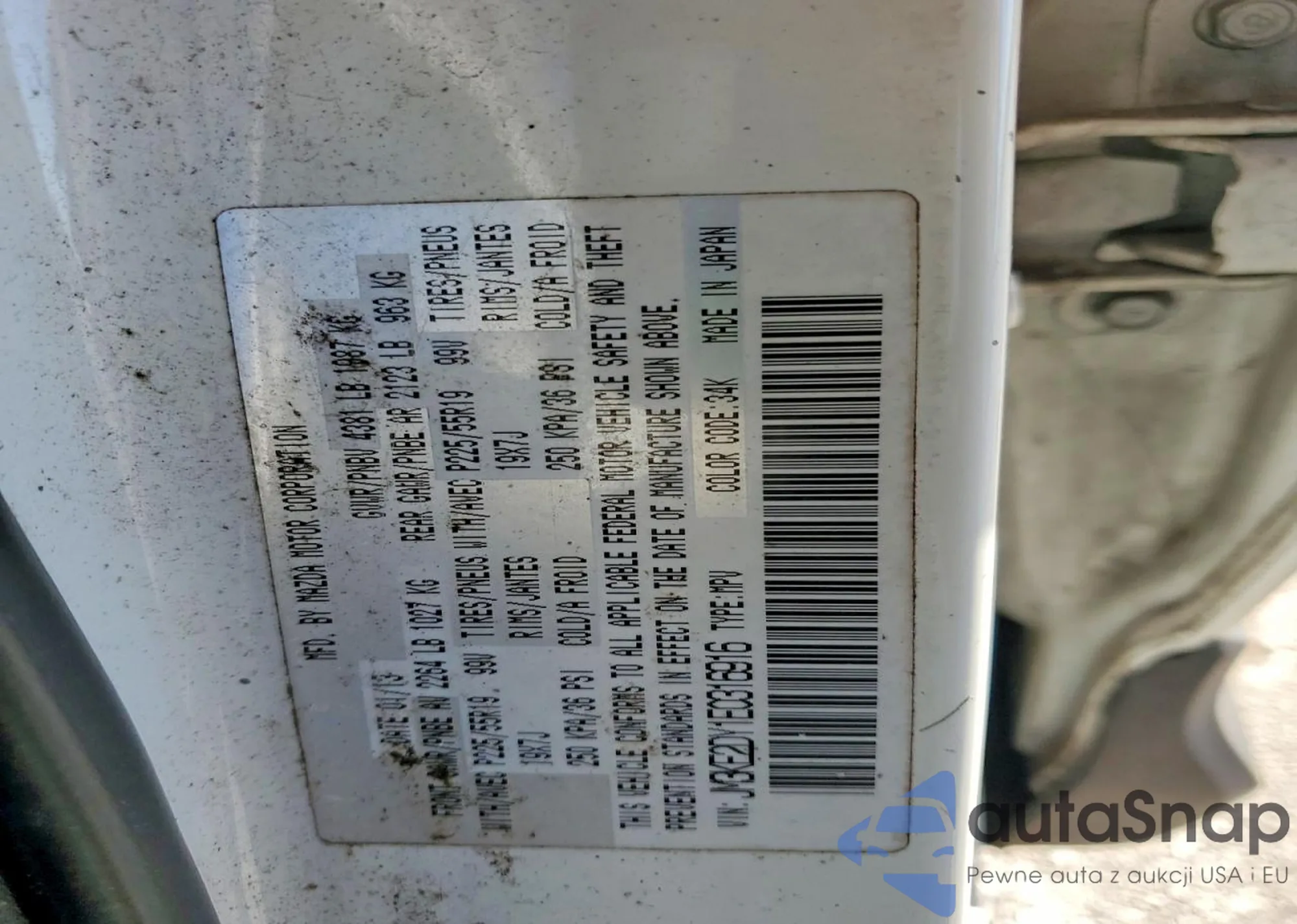 LOT: 99250445 VIN: JM3KE4DY1E0356327