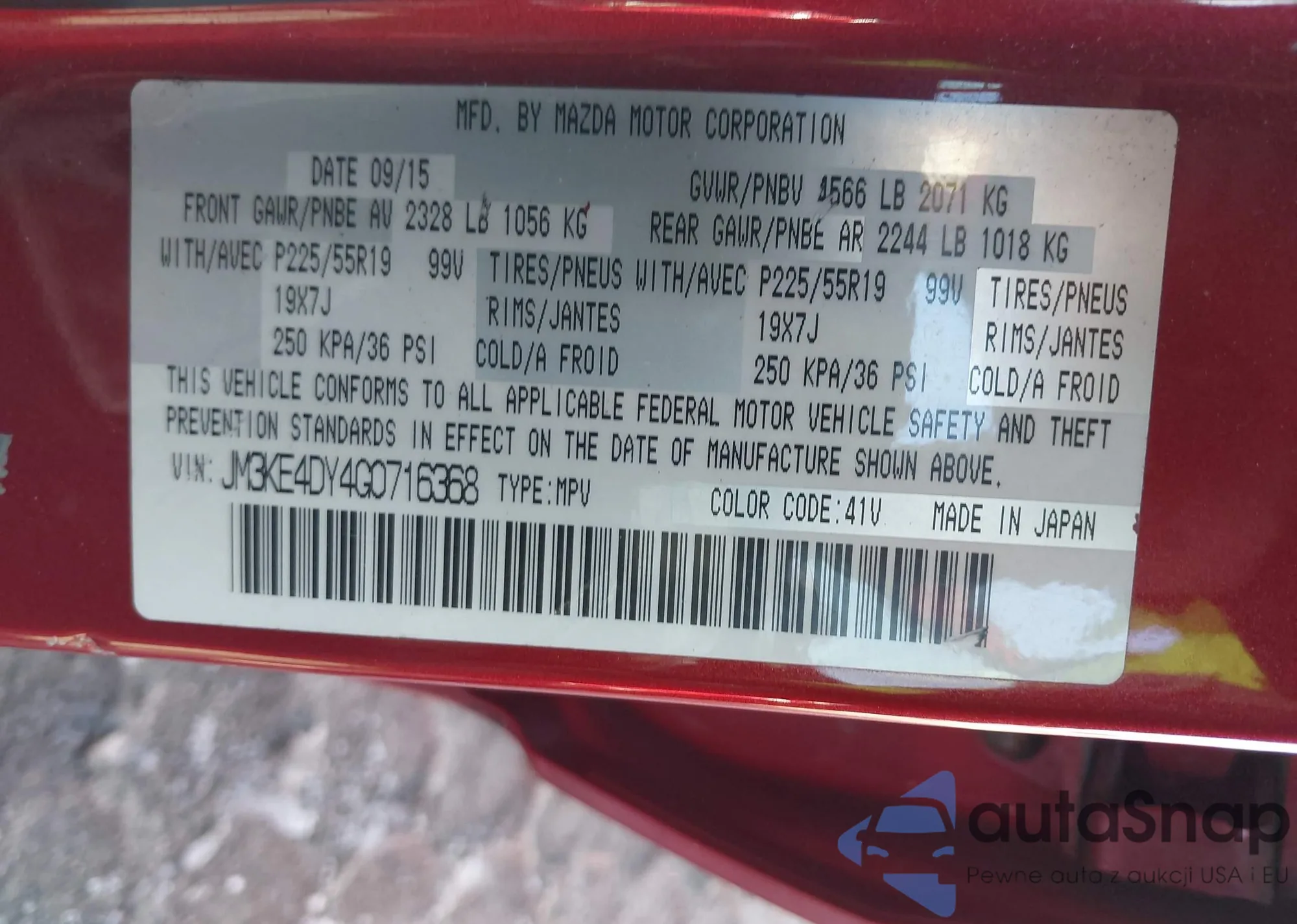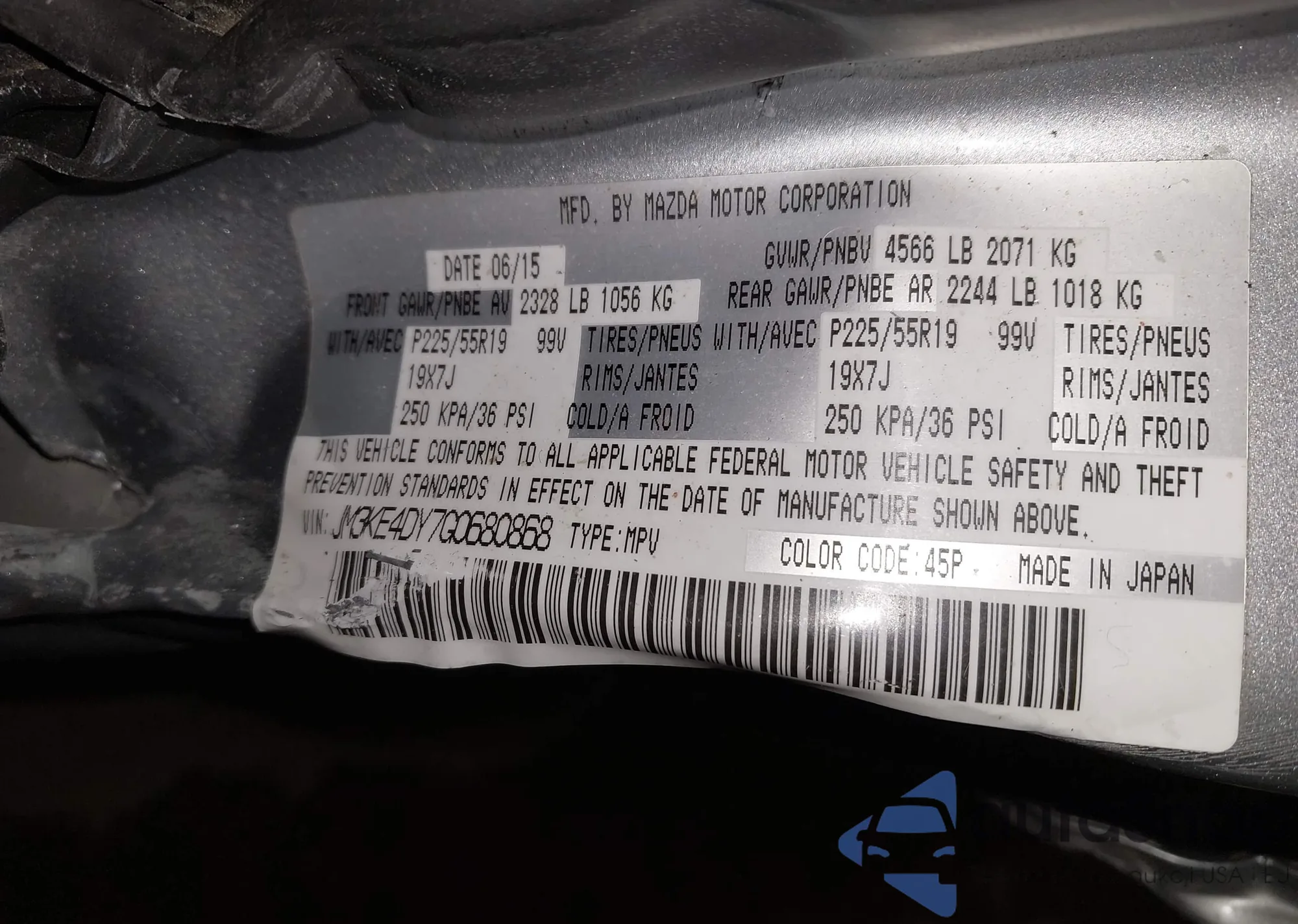 LOT: 44203145 VIN: JM3KE4DY7G0680868