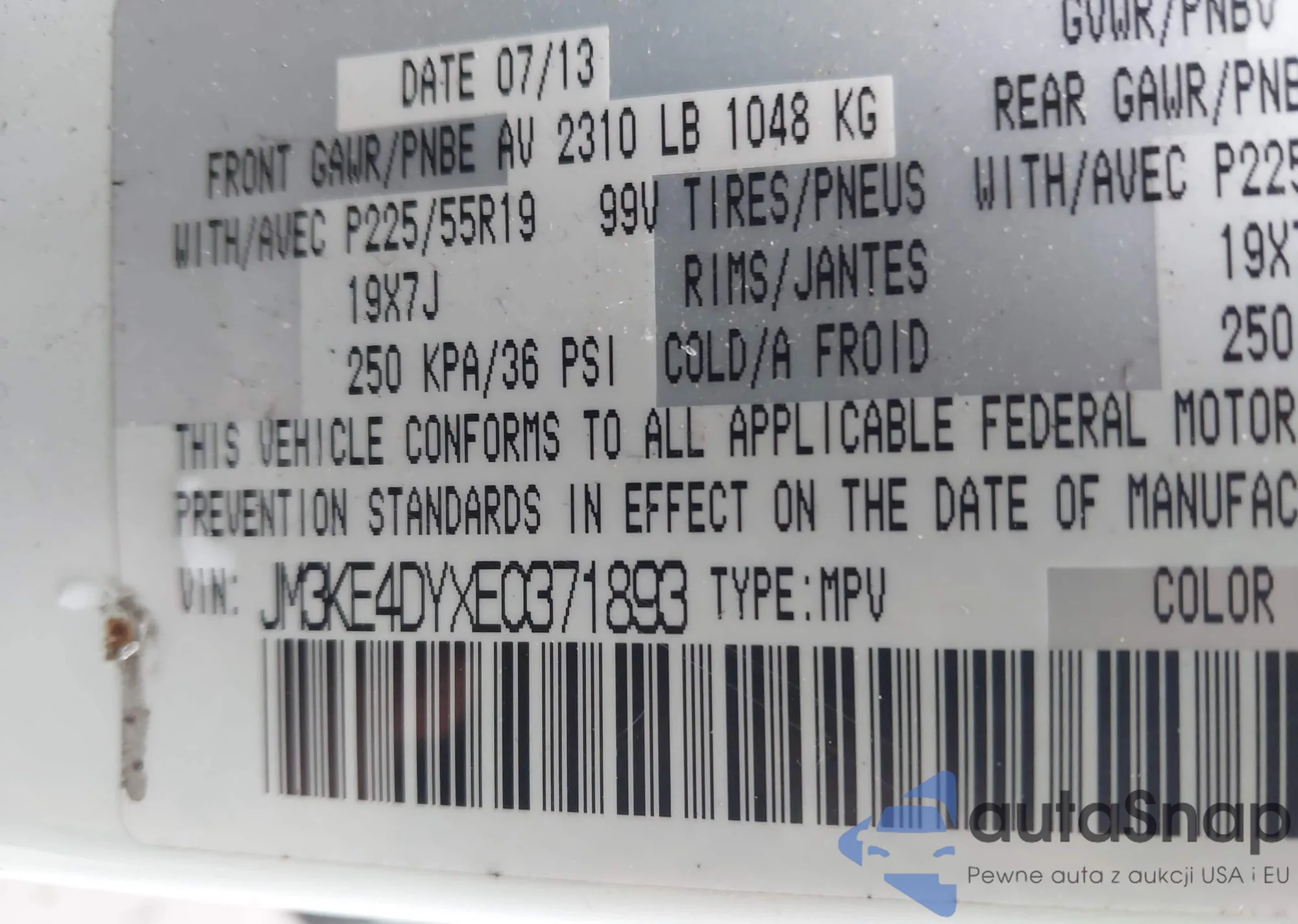LOT: 44478970 VIN: JM3KE4DYXE0371893