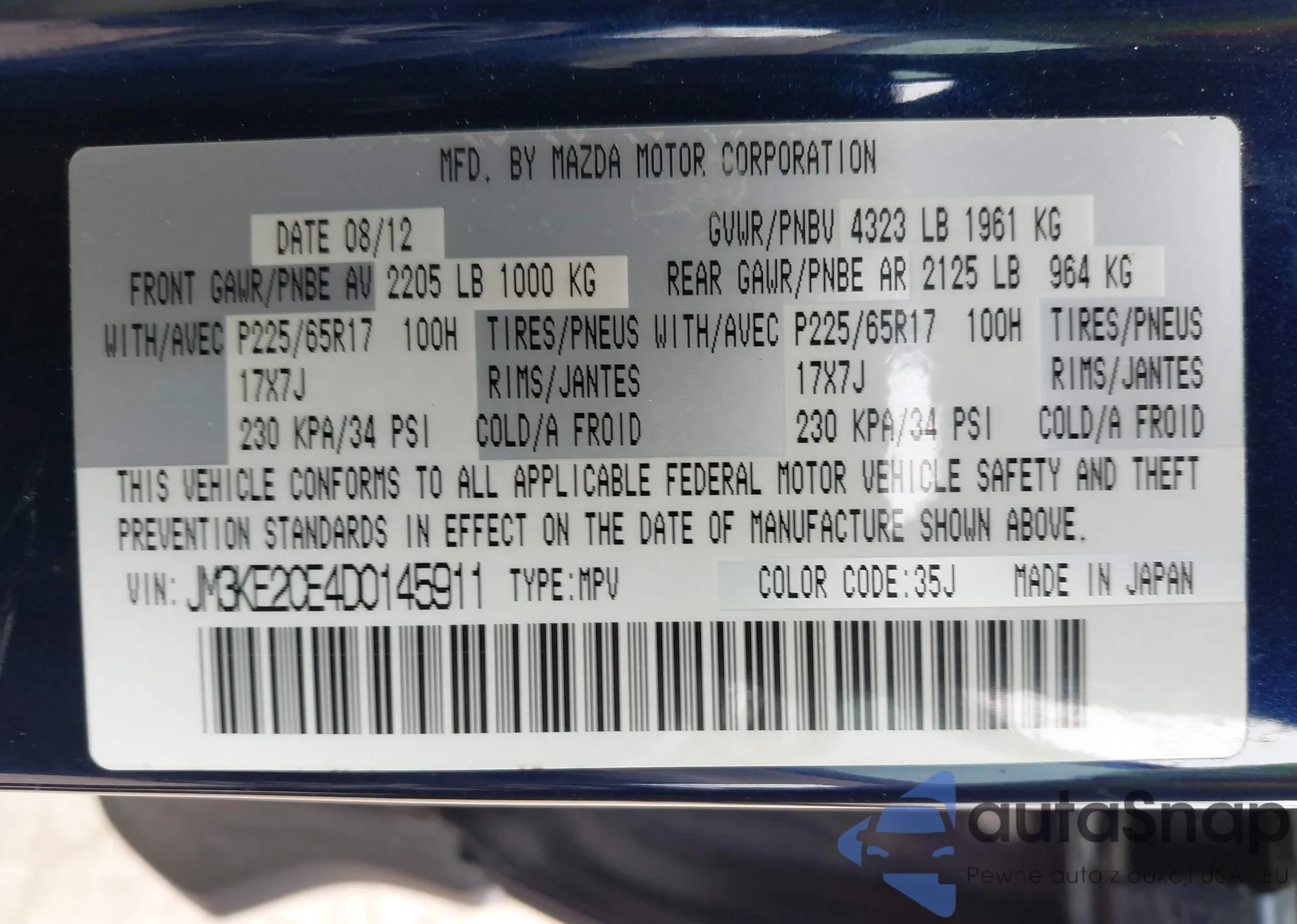 • VIN JM3KE2CE4D0145911