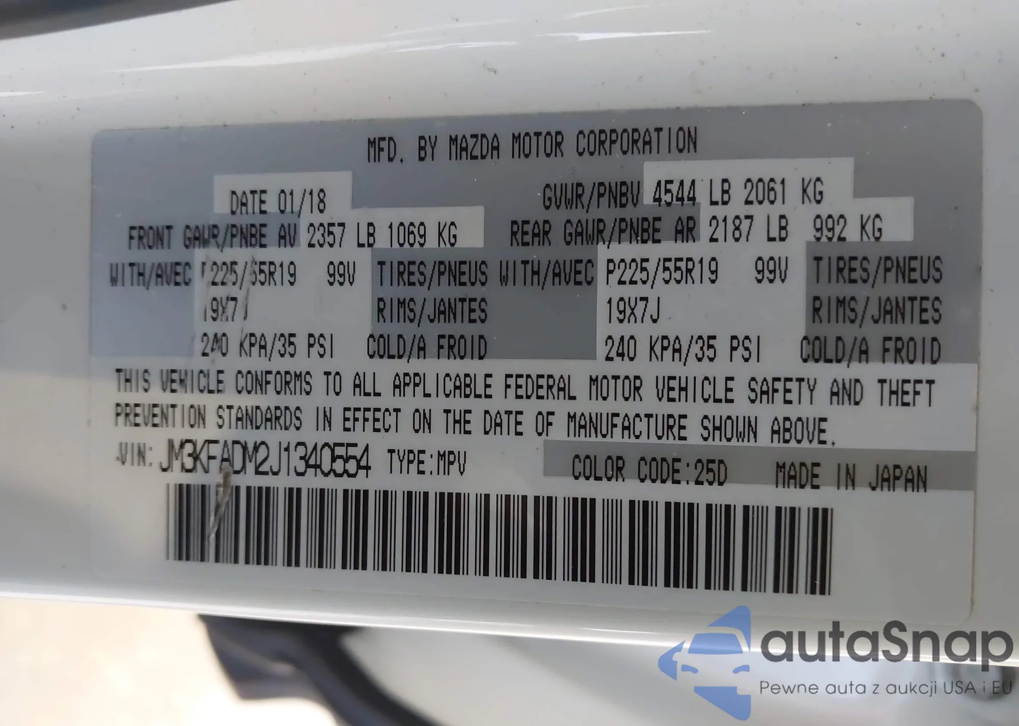 LOT: 43914836 VIN: JM3KFACM5J0402195