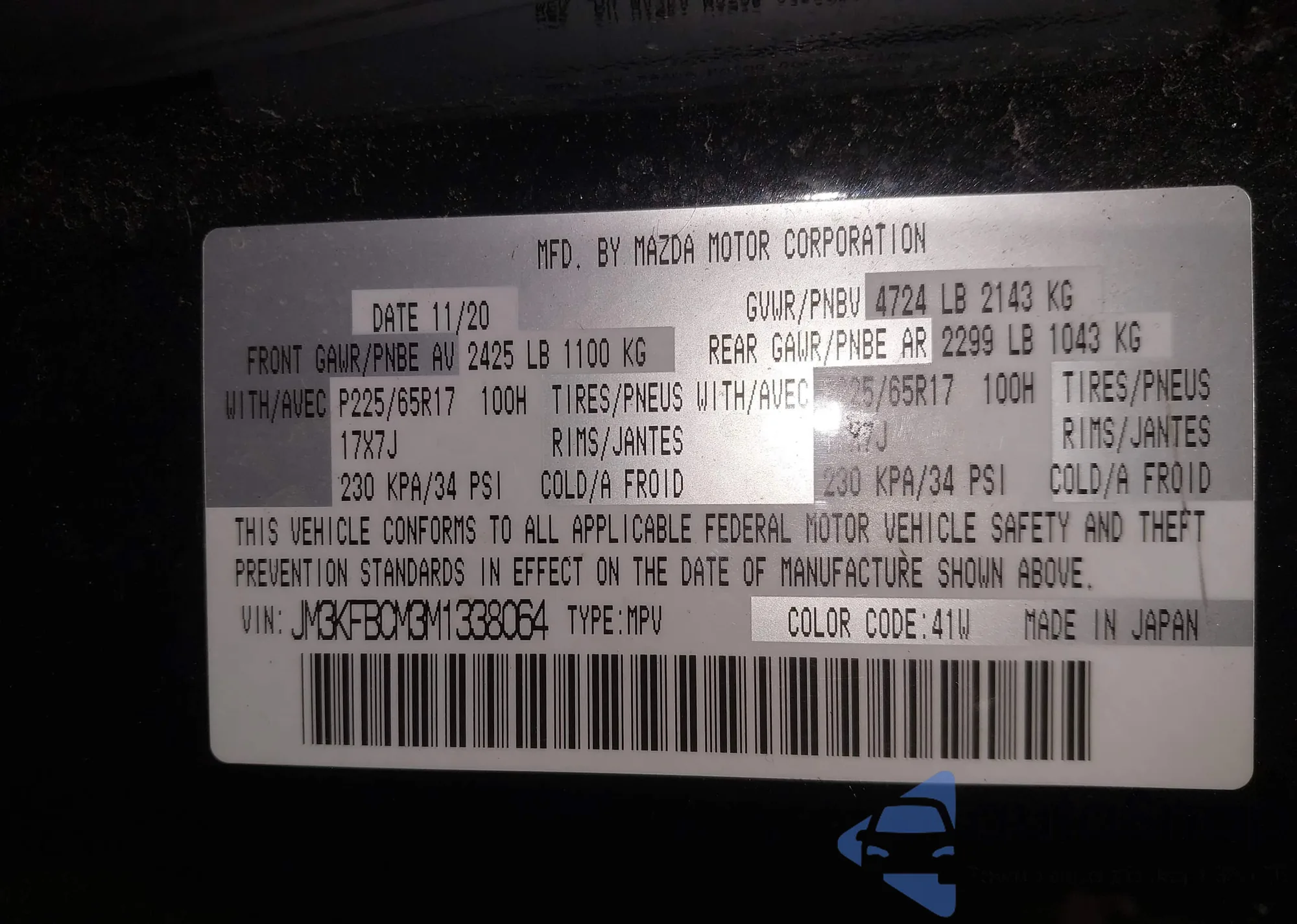 LOT: 44000638 VIN: JM3KFBCM3M1338064