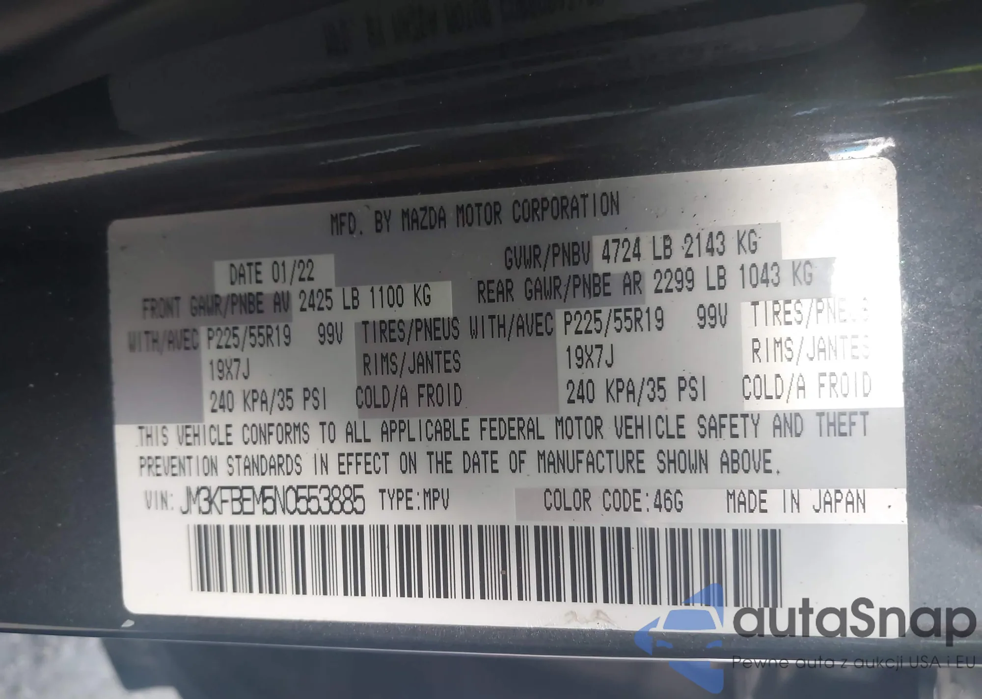 • VIN JM3KFBEM5N0553885