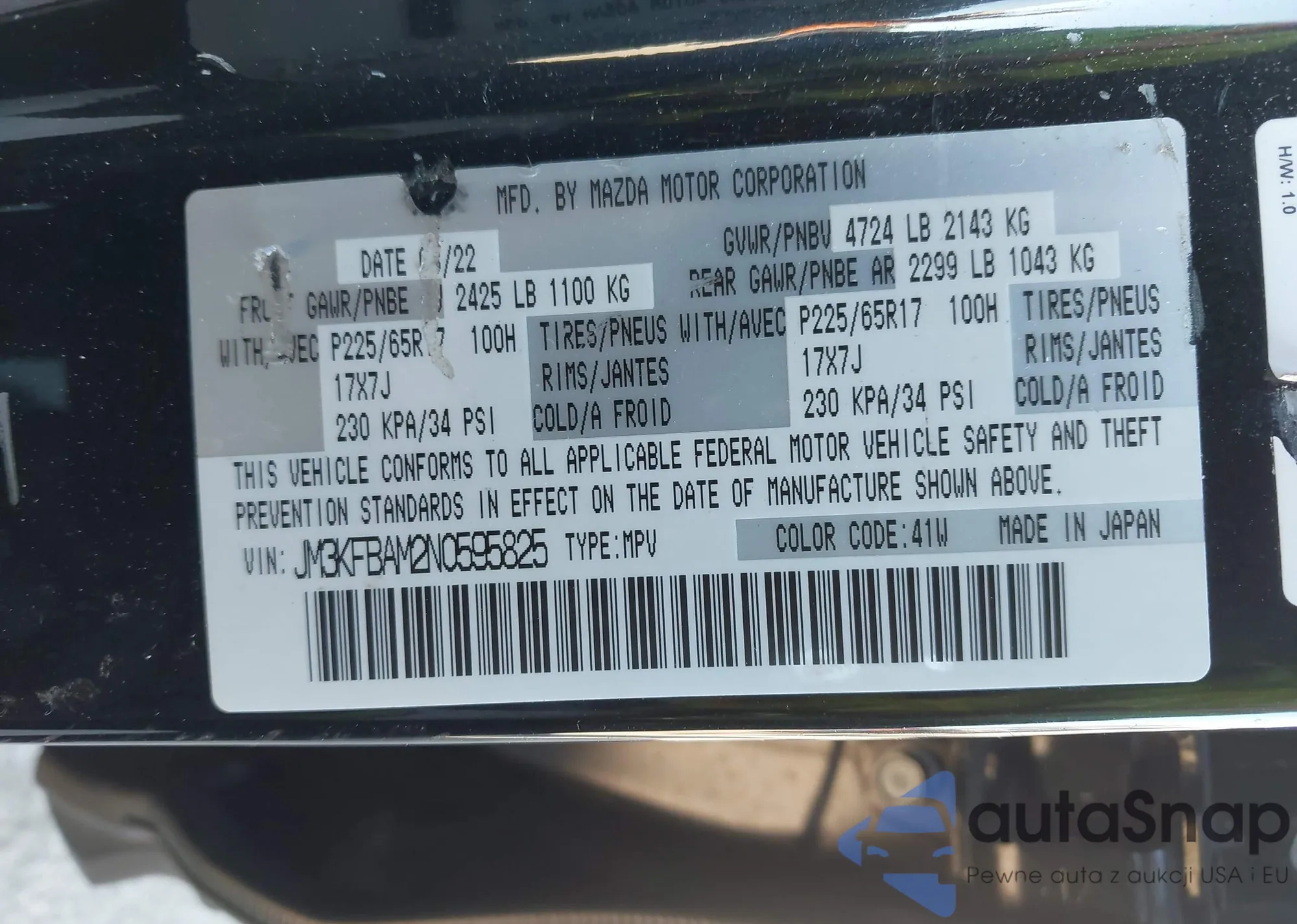 LOT: 44288426 VIN: JM3KFBAM2N0595825