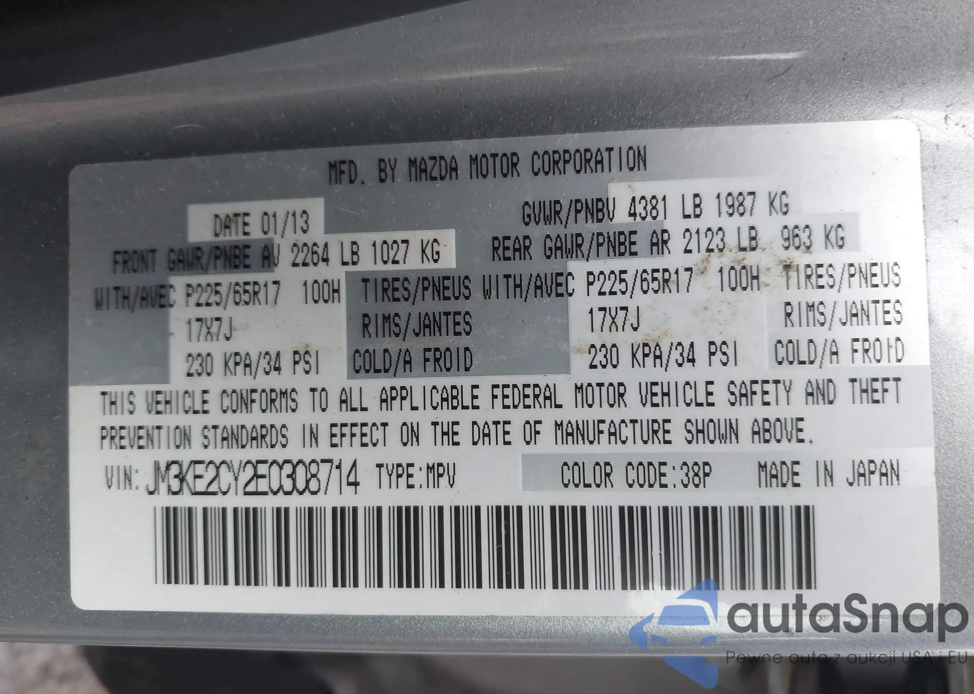 LOT: 44321978 VIN: JM3KE2CY2E0308714