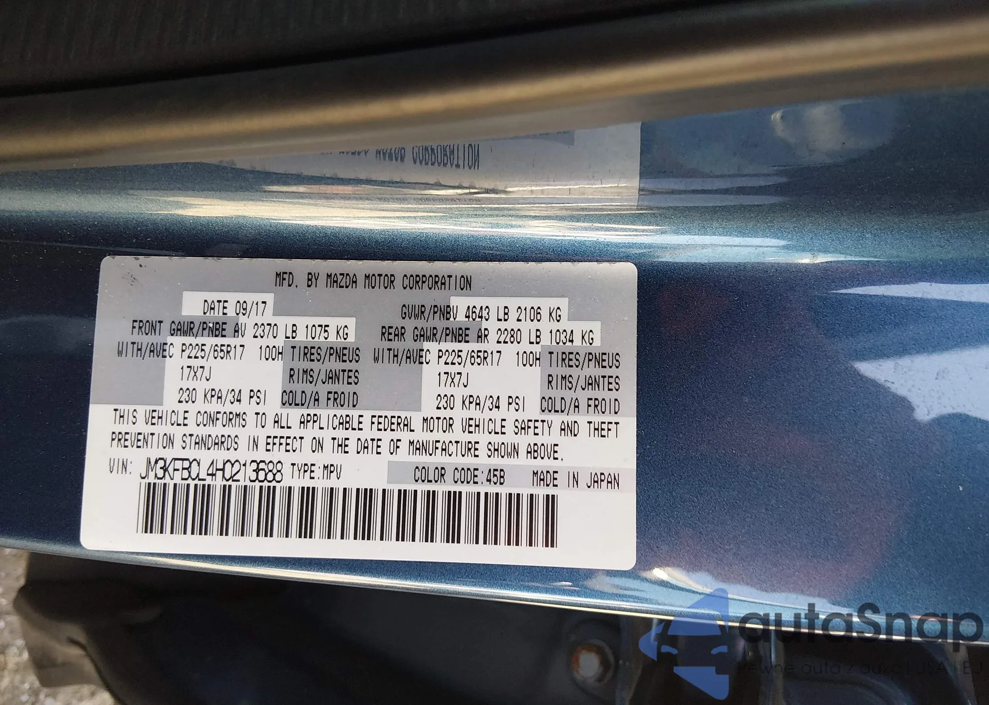 LOT: 44628783 VIN: JM3KFBCL4H0213688