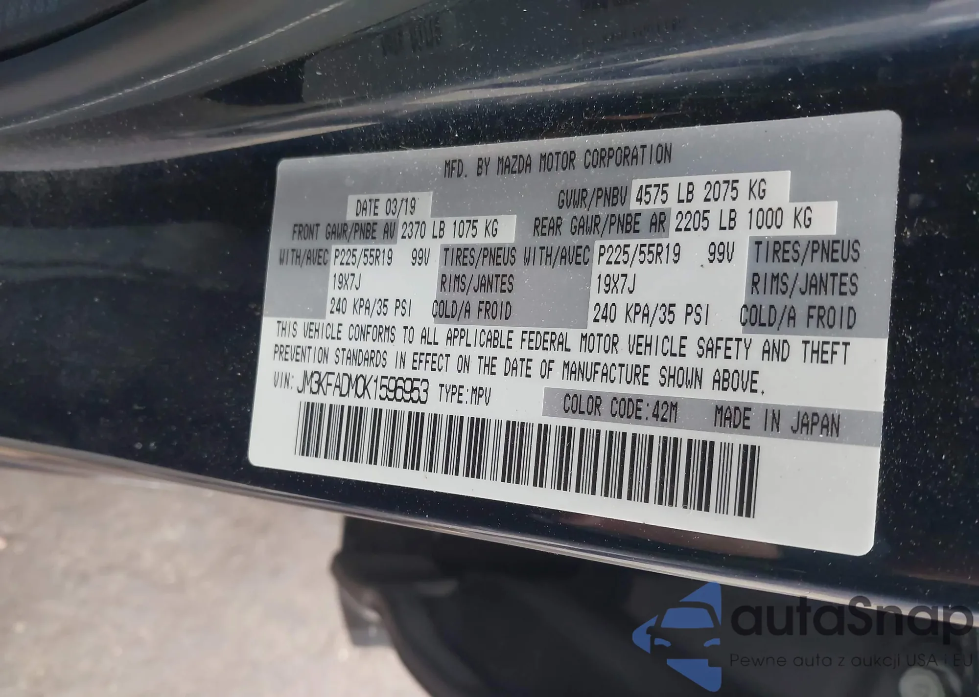 LOT: 44179677 VIN: JM3KFADM0K1596953