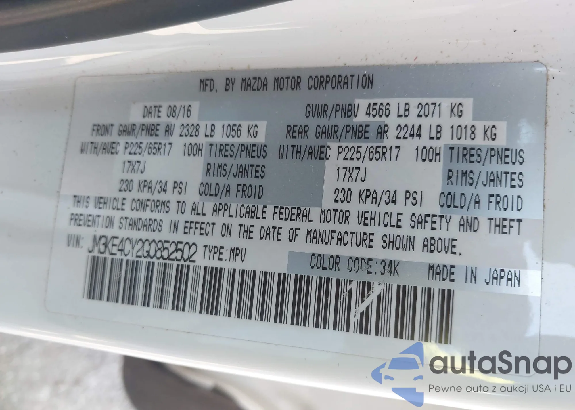 LOT: 44493110 VIN: JM3KE4CY2G0852502