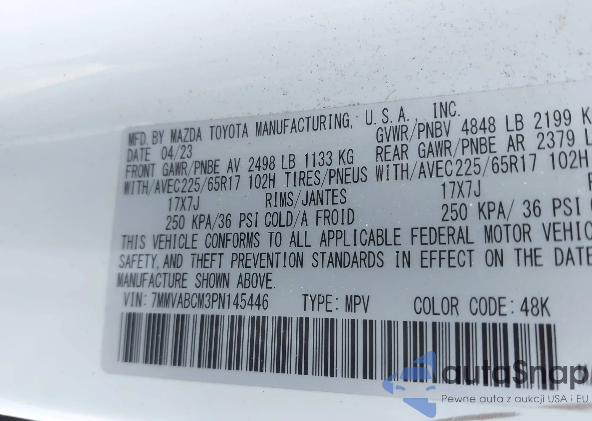 LOT: 43942104 VIN: 7MMVABCM3PN145446