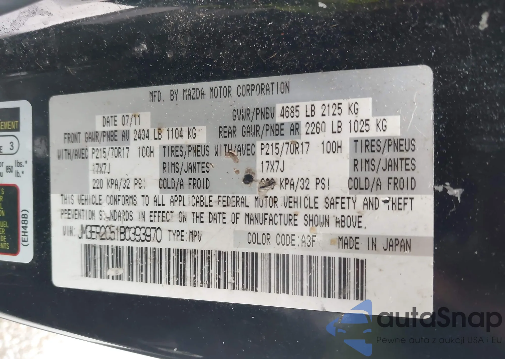 • VIN JM3ER2C51B0393970