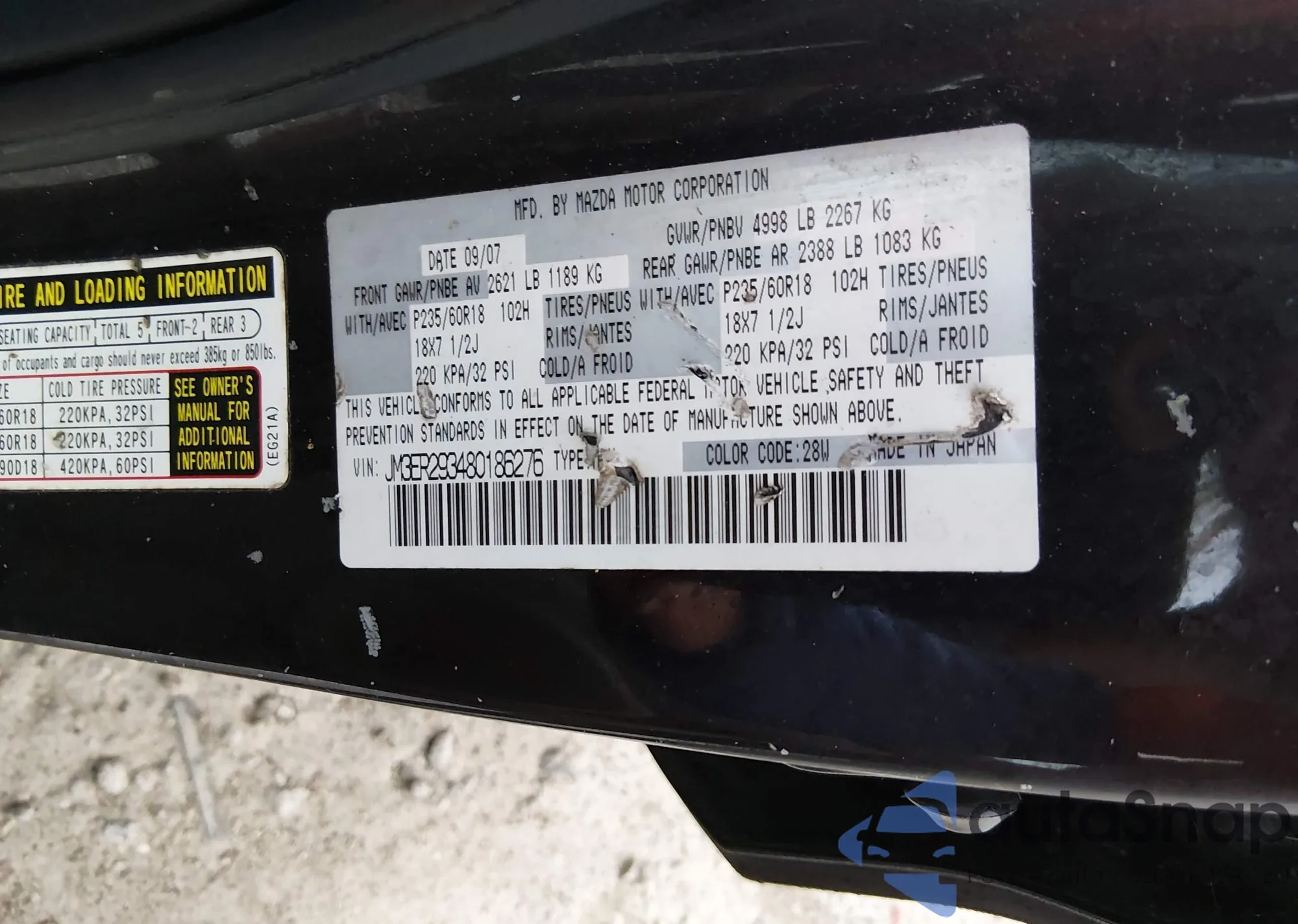 • VIN JM3ER293480186276