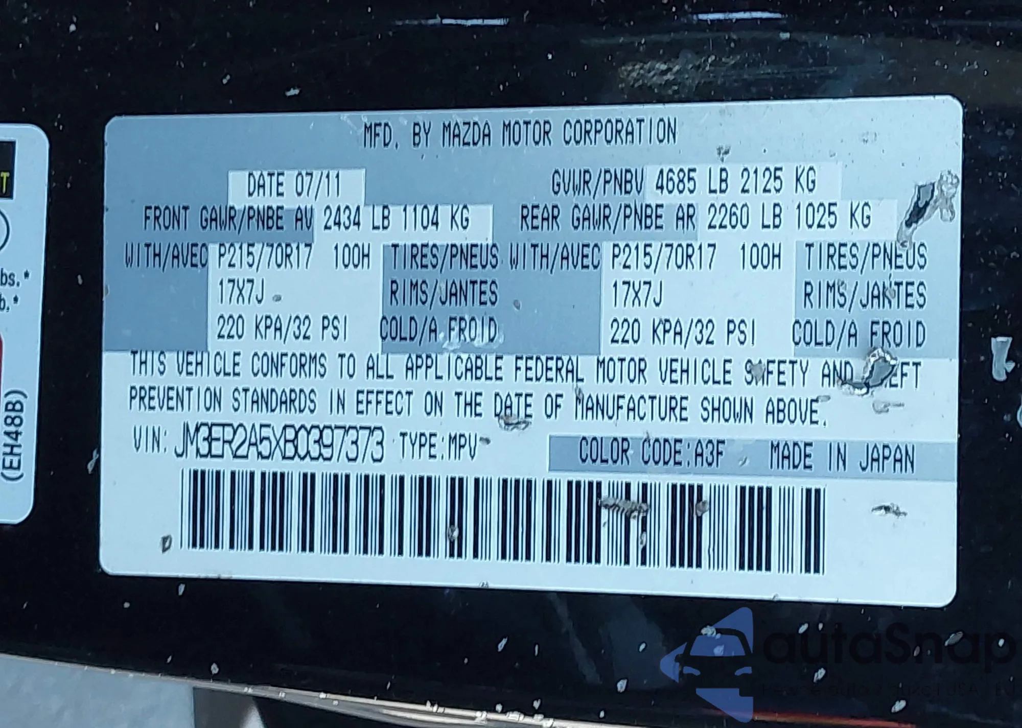 • VIN JM3ER2A5XB0397373