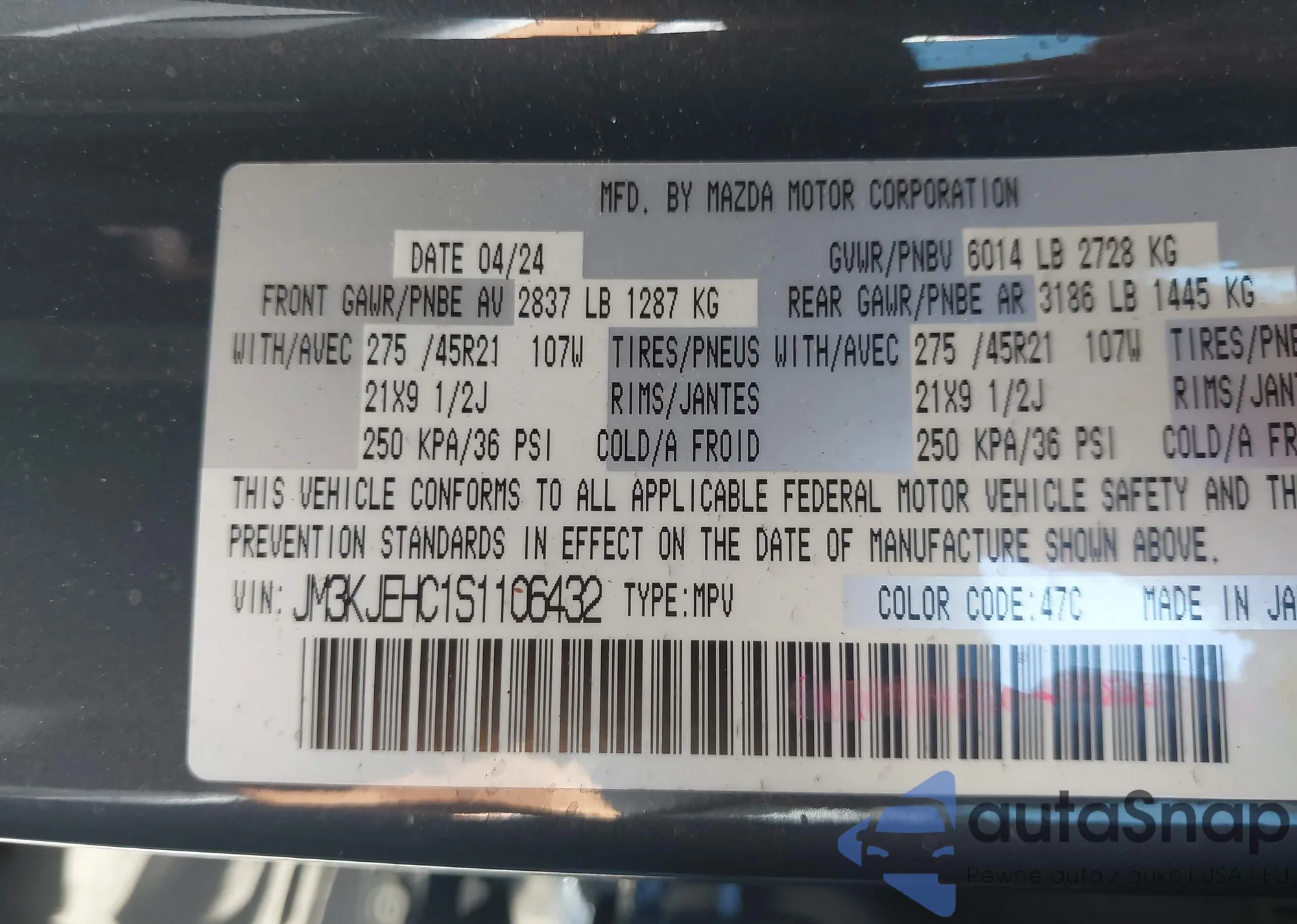 • VIN JM3KJEHC1S1106432