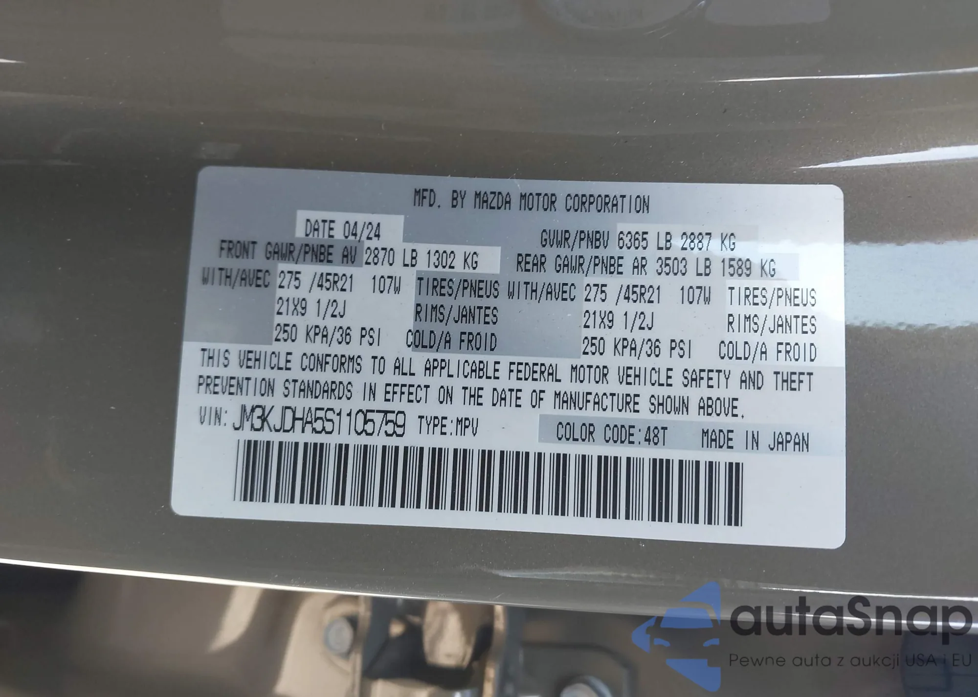 Looking to buy a Mazda CX-70 from the USA? Autasnap makes importing this exceptional vehicle easy for you. We offer comprehensive services including replacing headlights, windows, and turn signals, as well as adapting the navigation system for European standards. Get a stylish and reliable car that will be your trusted companion on the road.