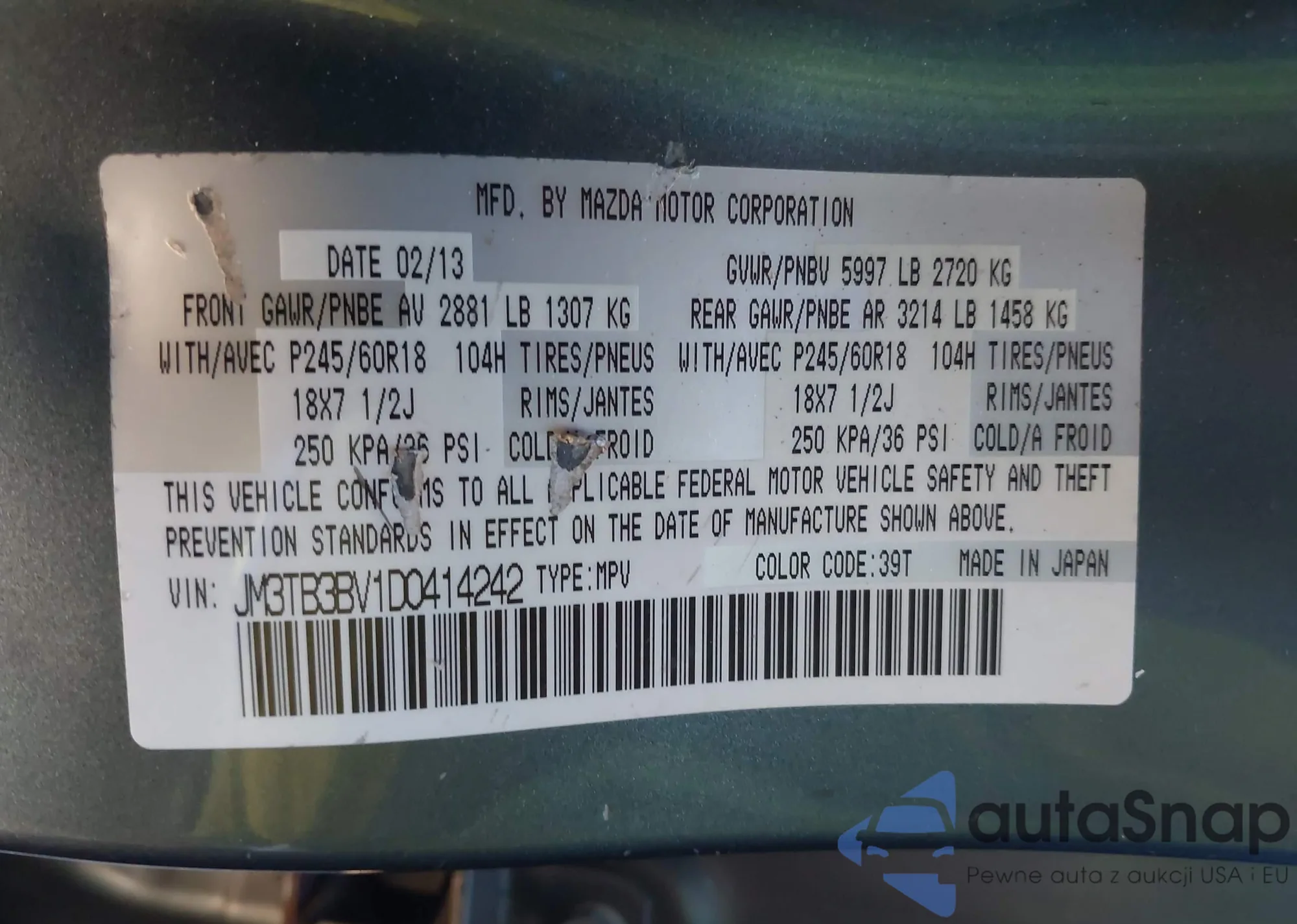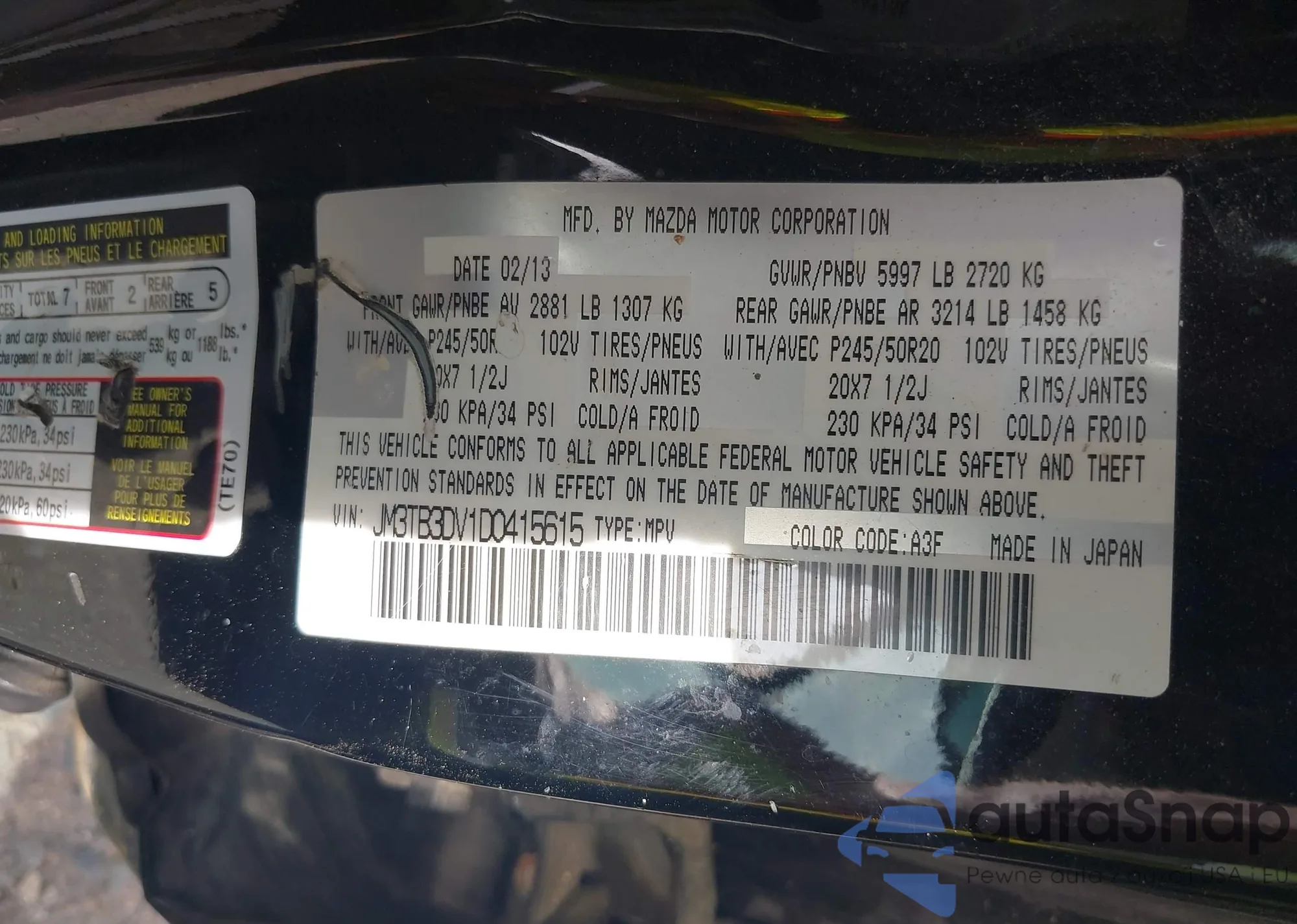 • VIN JM3TB3BV1D0414242
