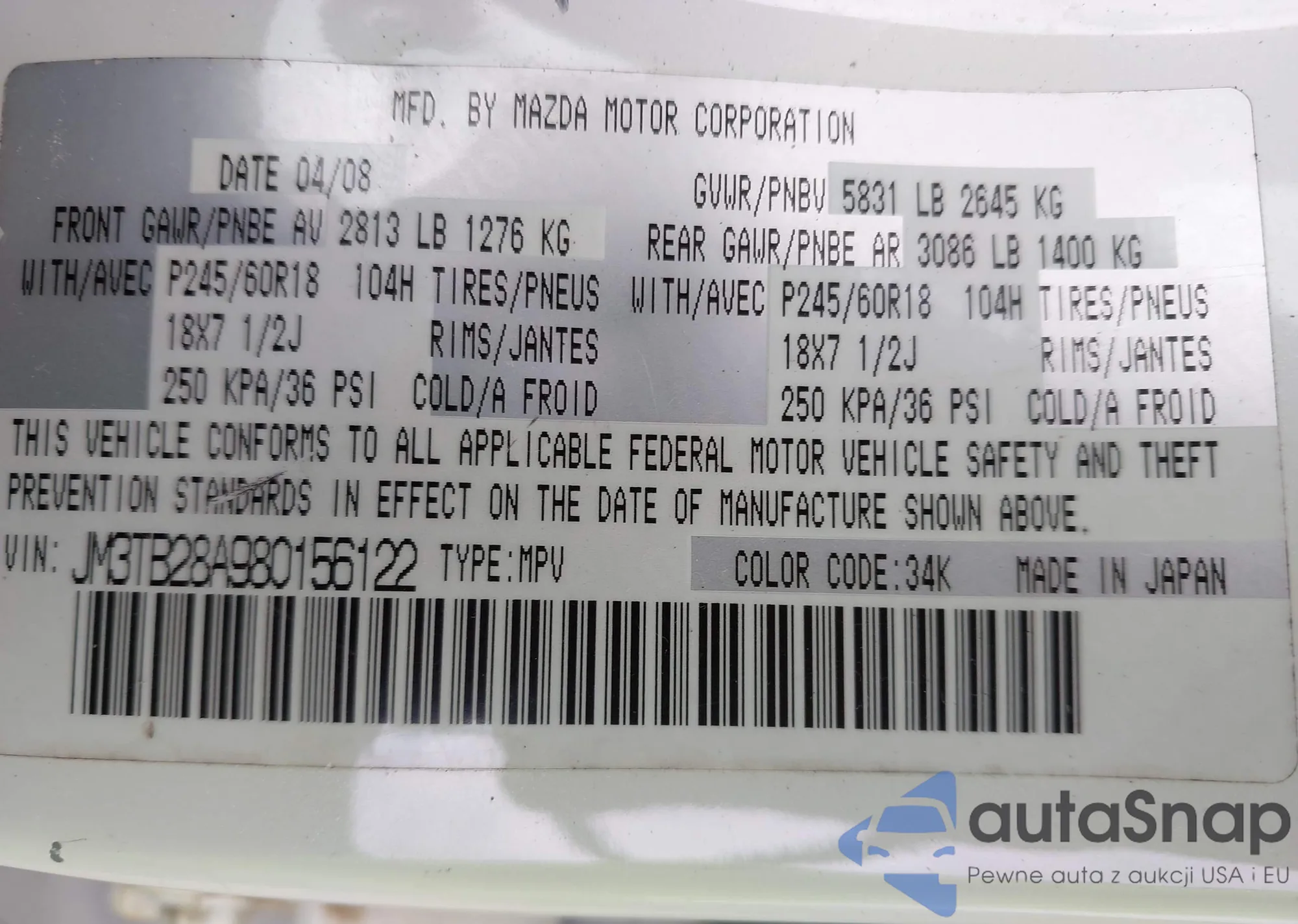 • VIN JM3TB2CA9D0404080