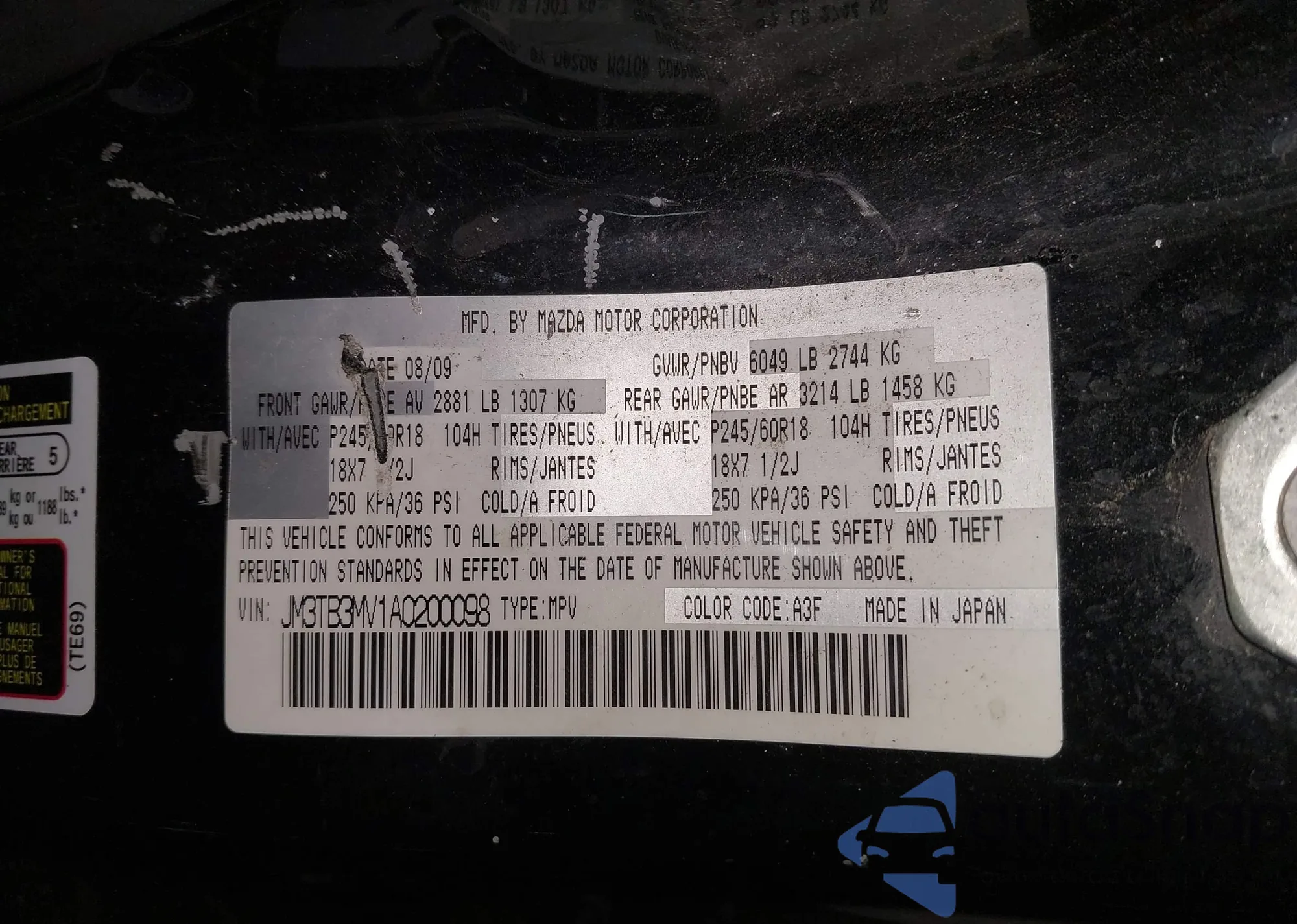 • VIN JM3TB3CV7D0409447