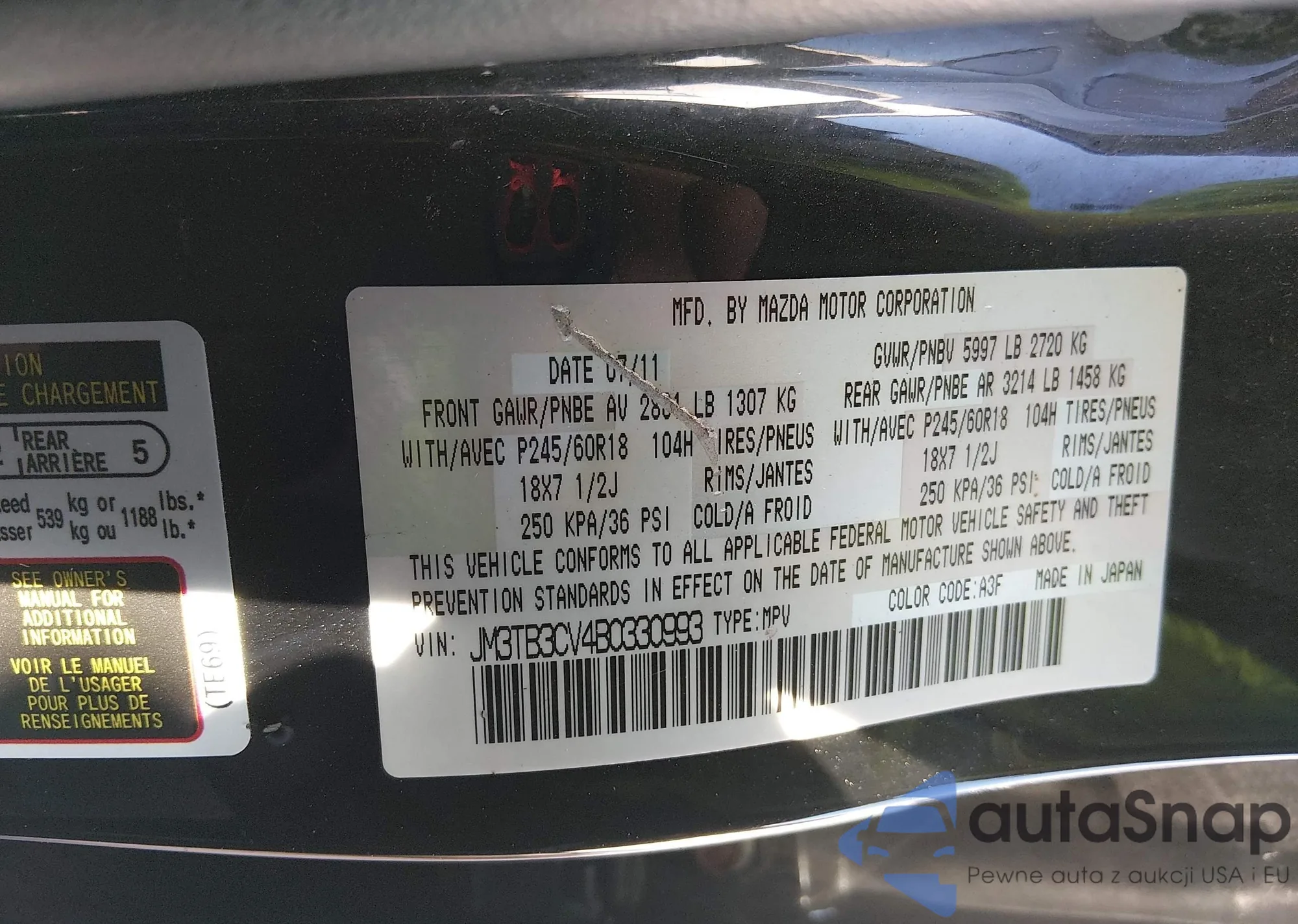 • VIN JM3TB3CV4B0330993