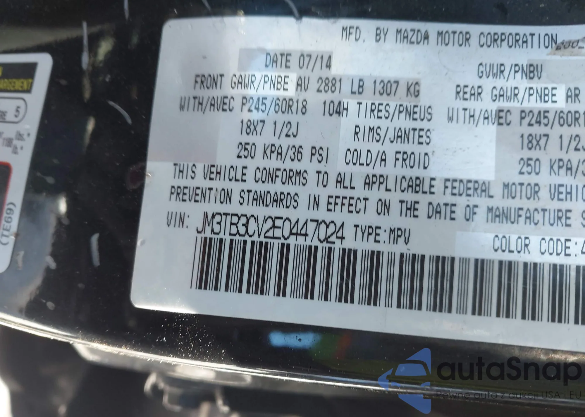 LOT: 44491939 VIN: JM3TB3CV2E0447024