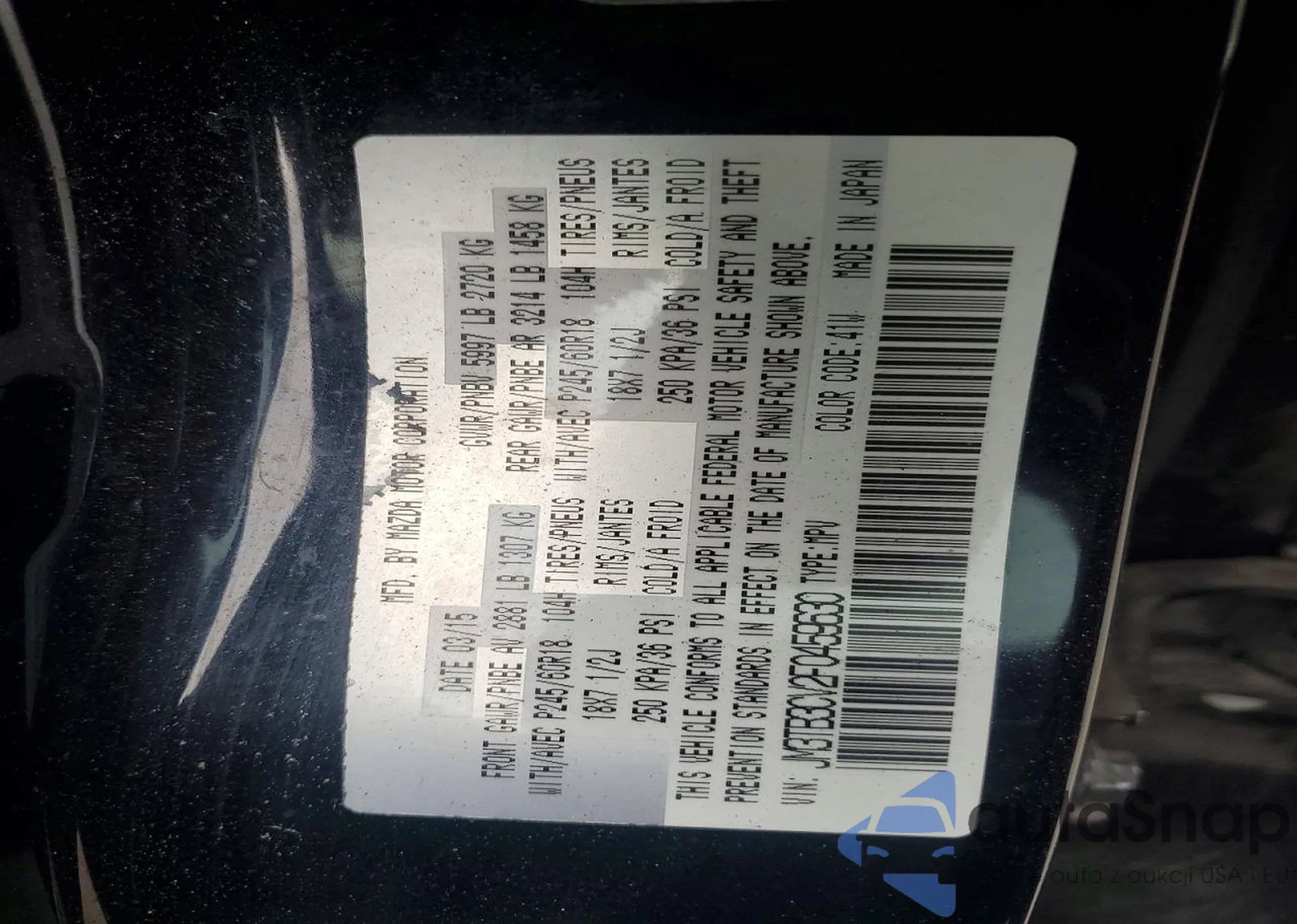 LOT: 72453765 VIN: JM3TB3CV2F0459630