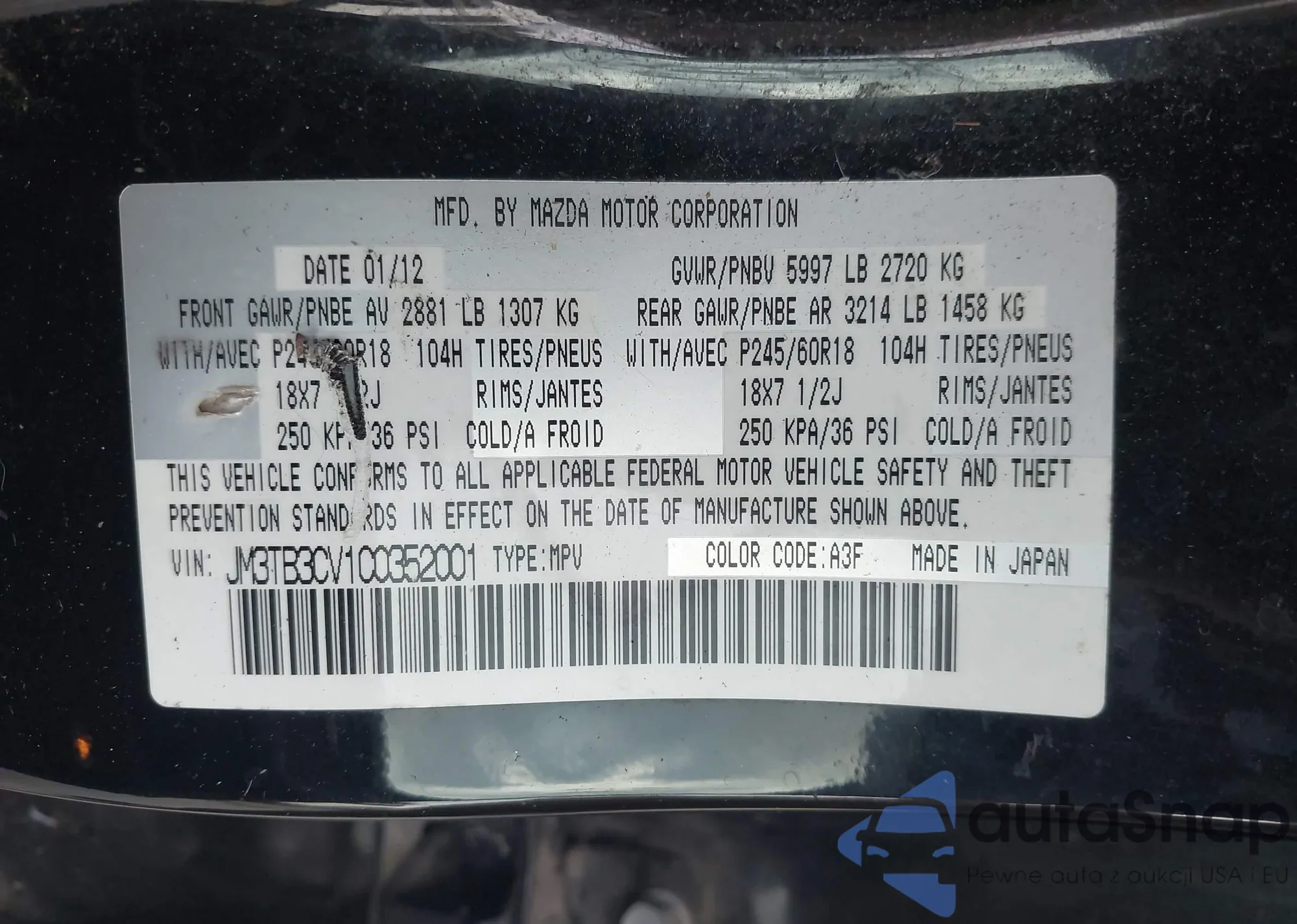 • VIN JM3TB3CV1C0352001