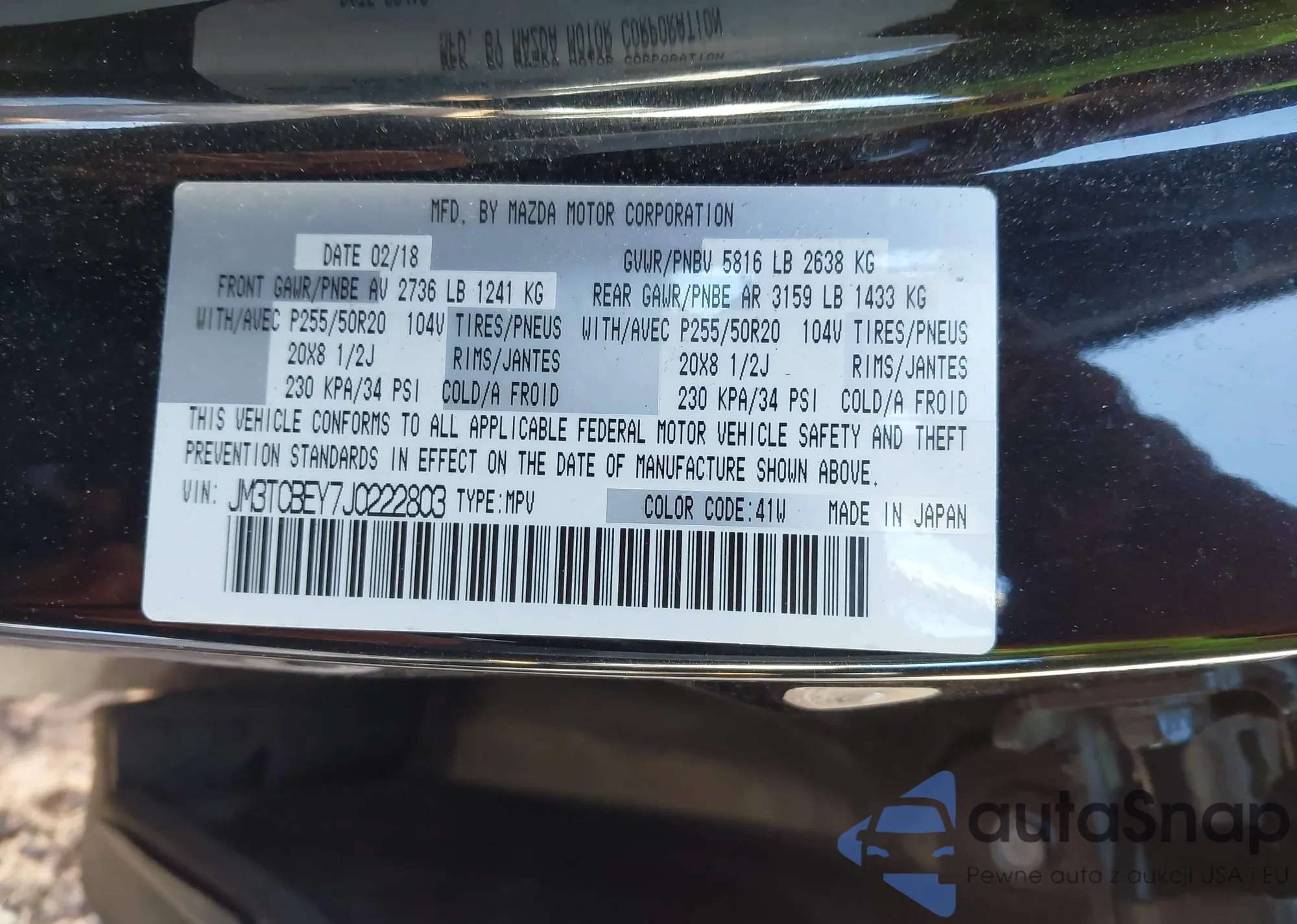 LOT: 43869438 VIN: JM3TCBCY6J0216879