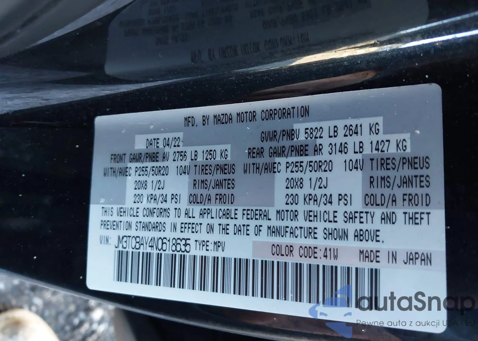 • VIN JM3TCBAY4N0618635