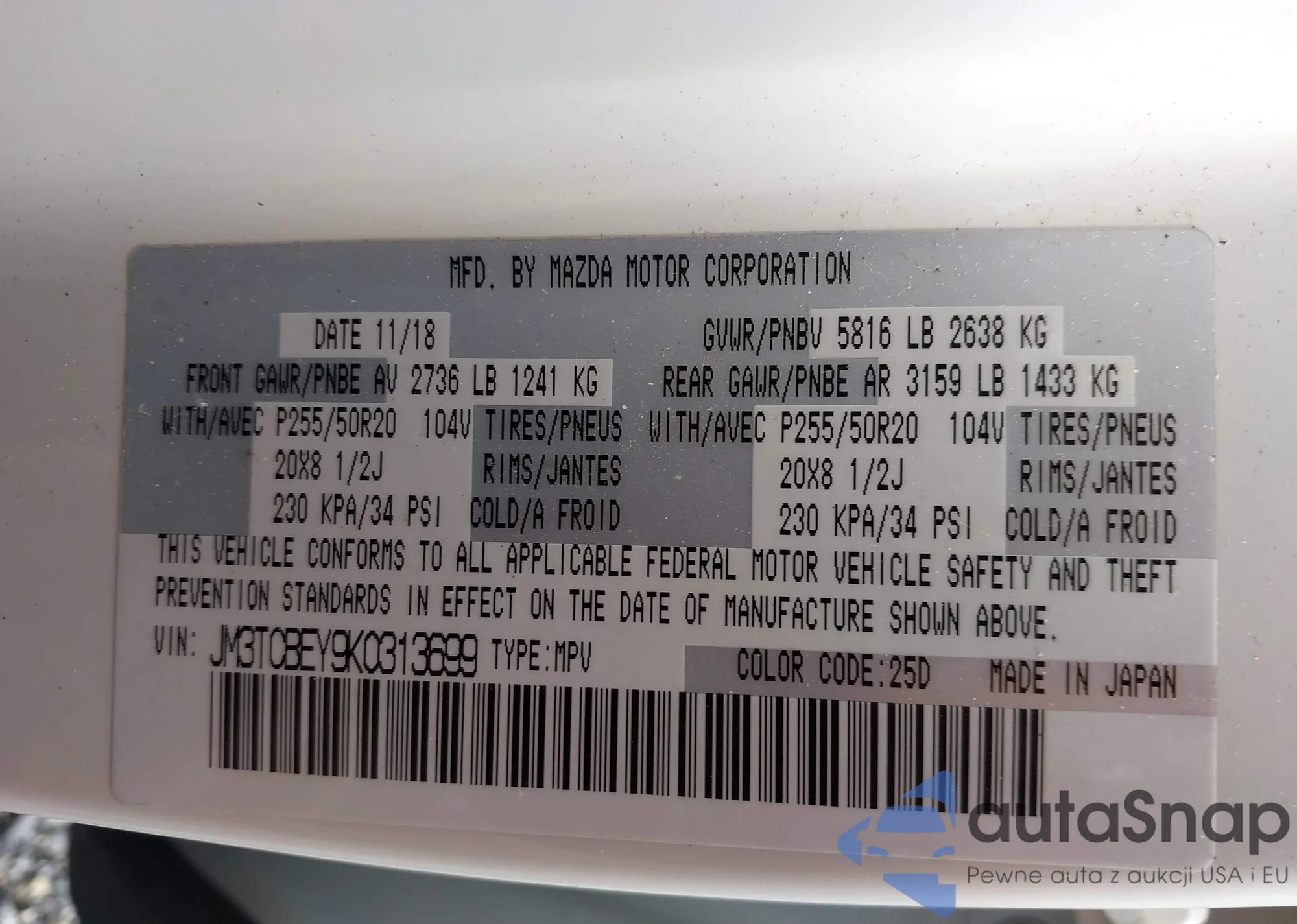 • VIN JM3TCBEY9K0313699