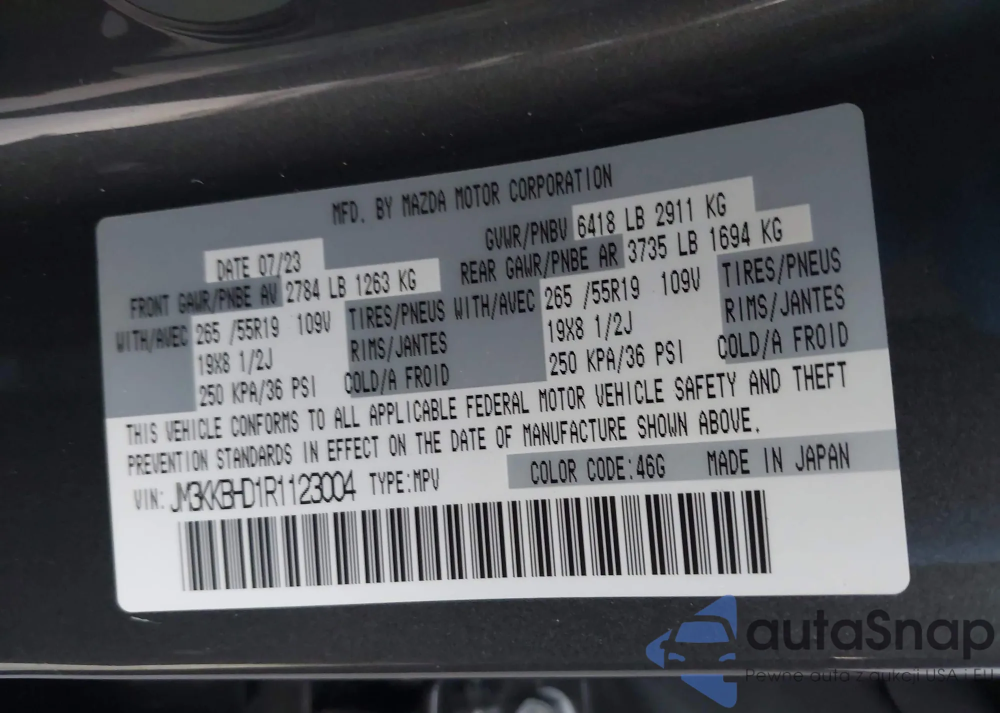 LOT: 44103776 VIN: JM3KKBHA6R1155646