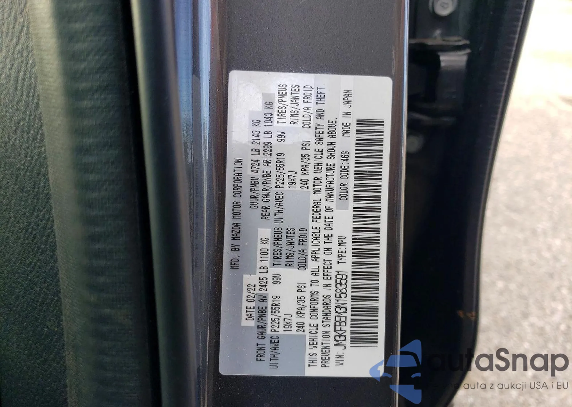 LOT: 74090175 VIN: JM3TCBEY9J0206070