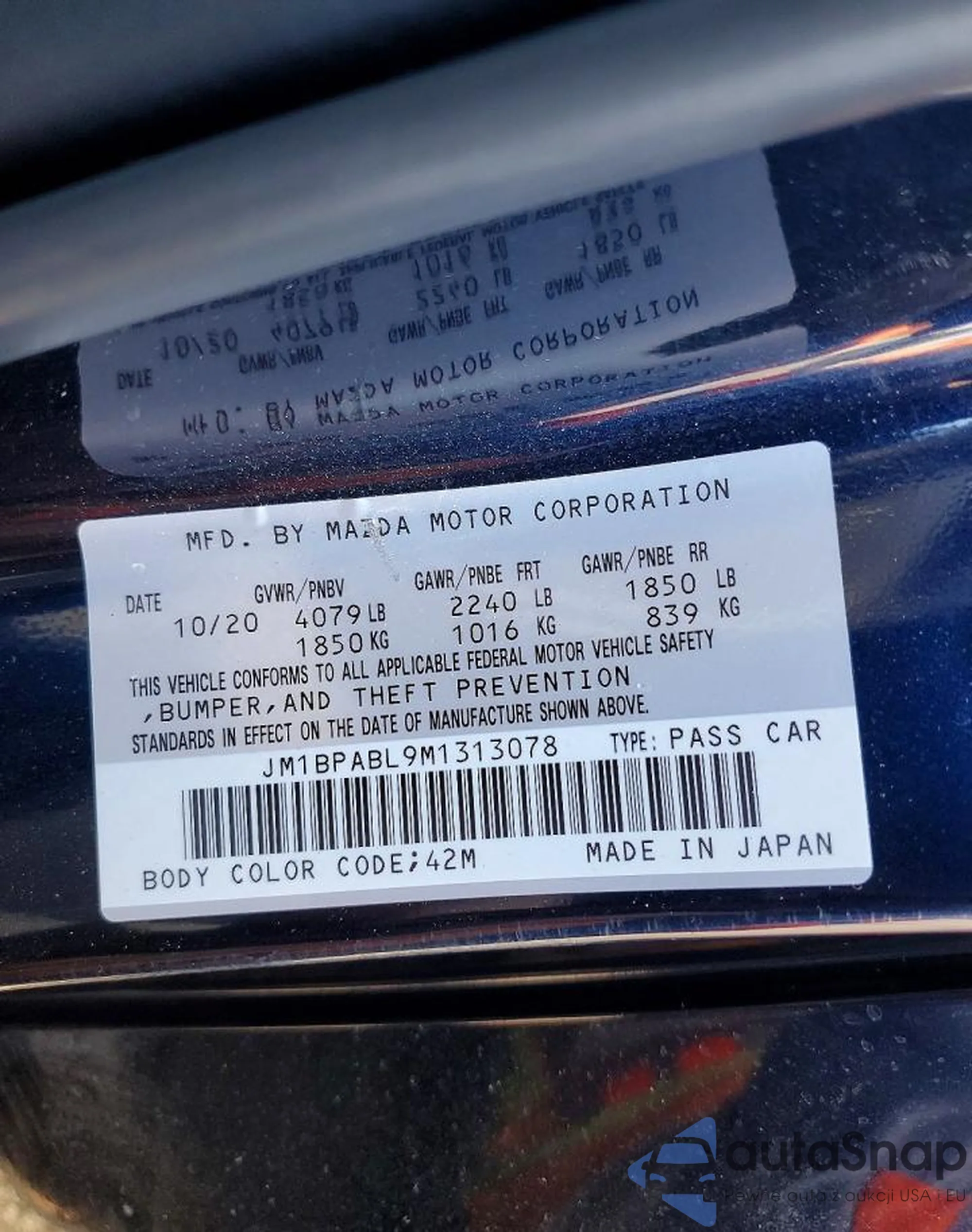 LOT: 75570015 VIN: JM1BPABL9M1313078