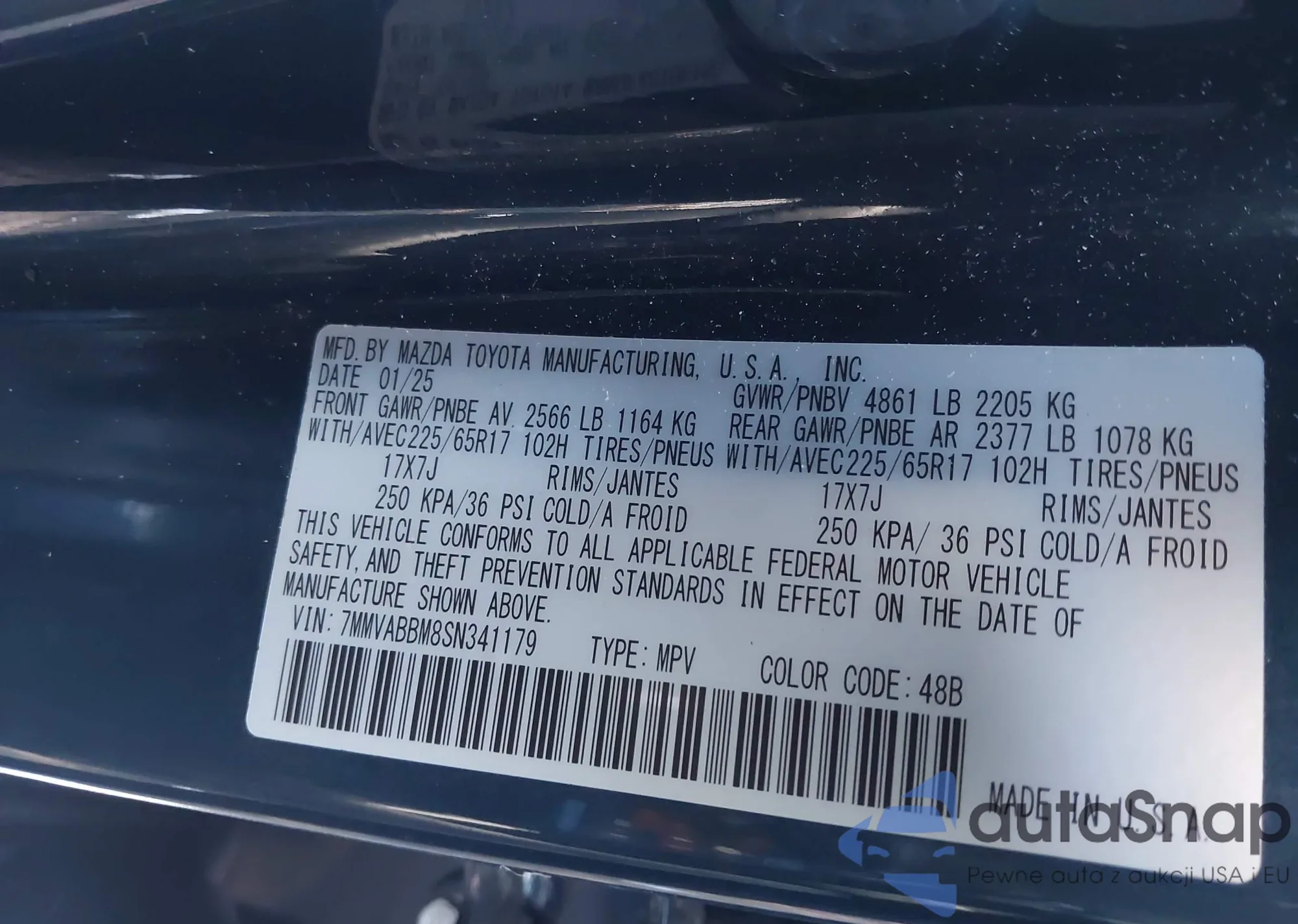 • VIN 7MMVABBM8SN341179