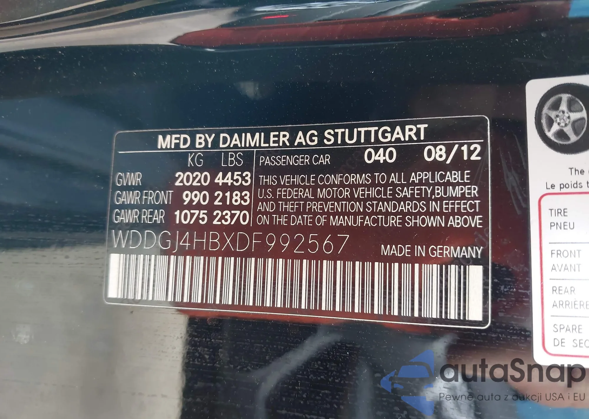• VIN WDDGJ4HBXDF992567