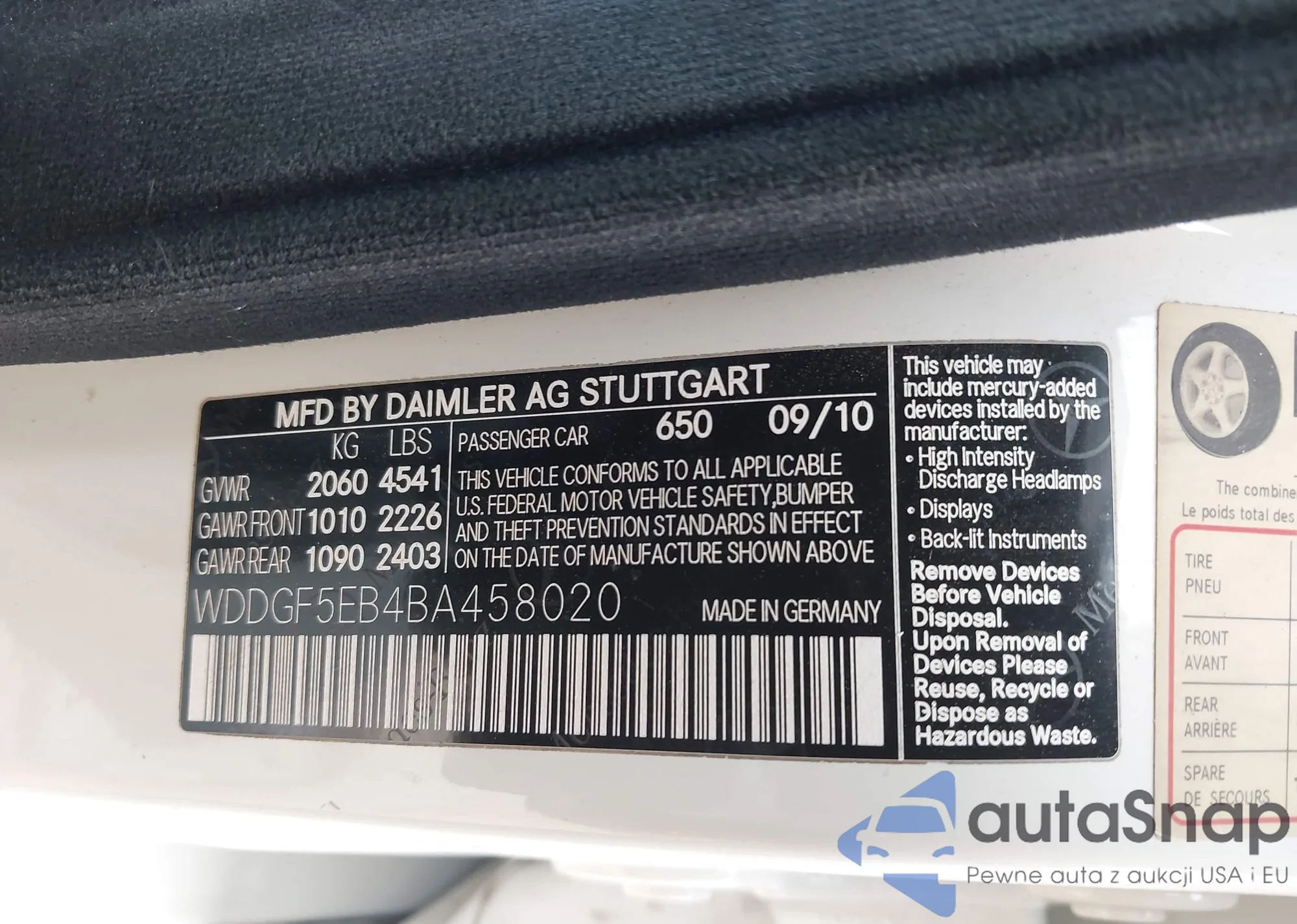 • VIN WDDGF5EB4BA458020