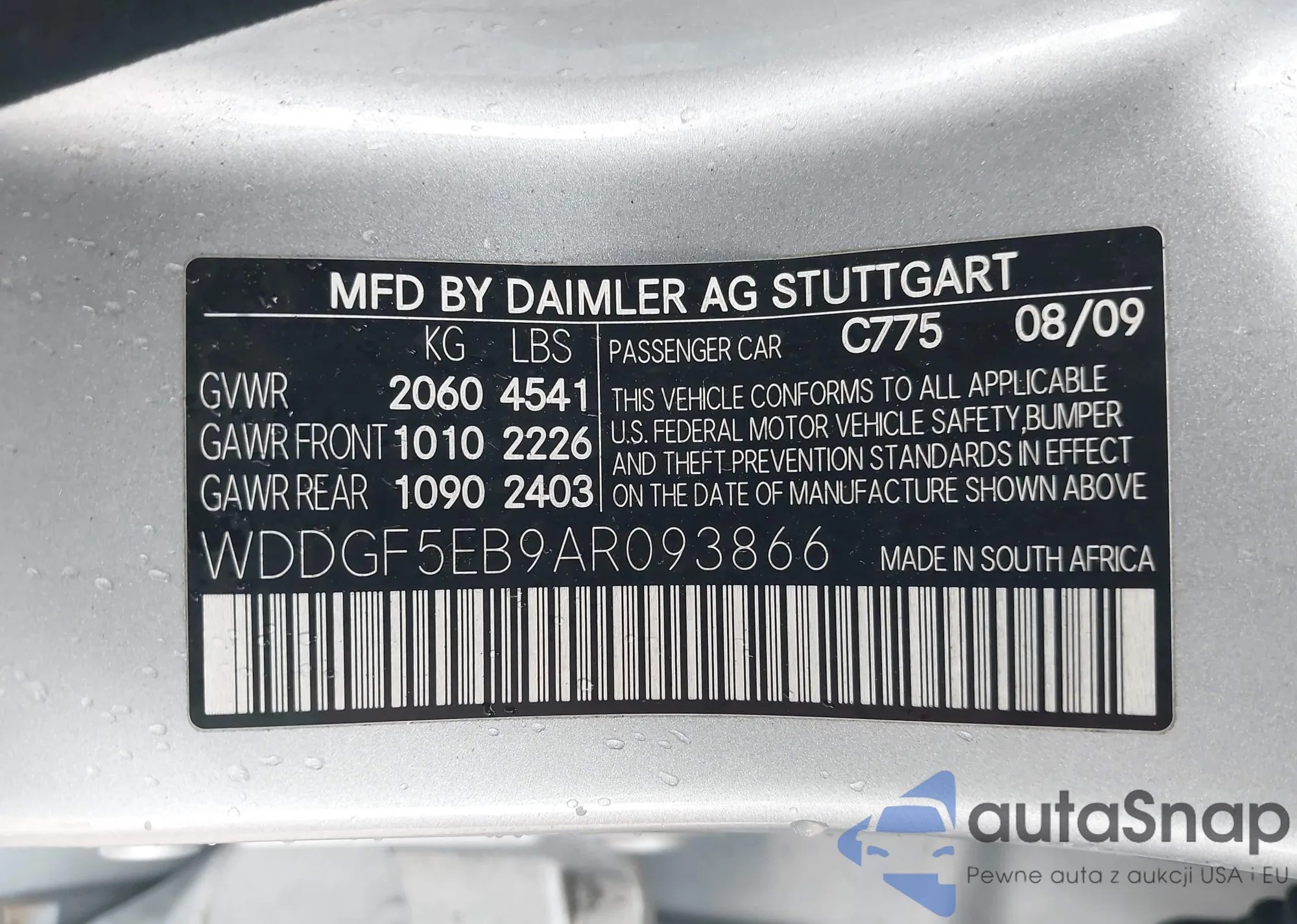 LOT: 44221571 VIN: WDDGF5EB9AR093866