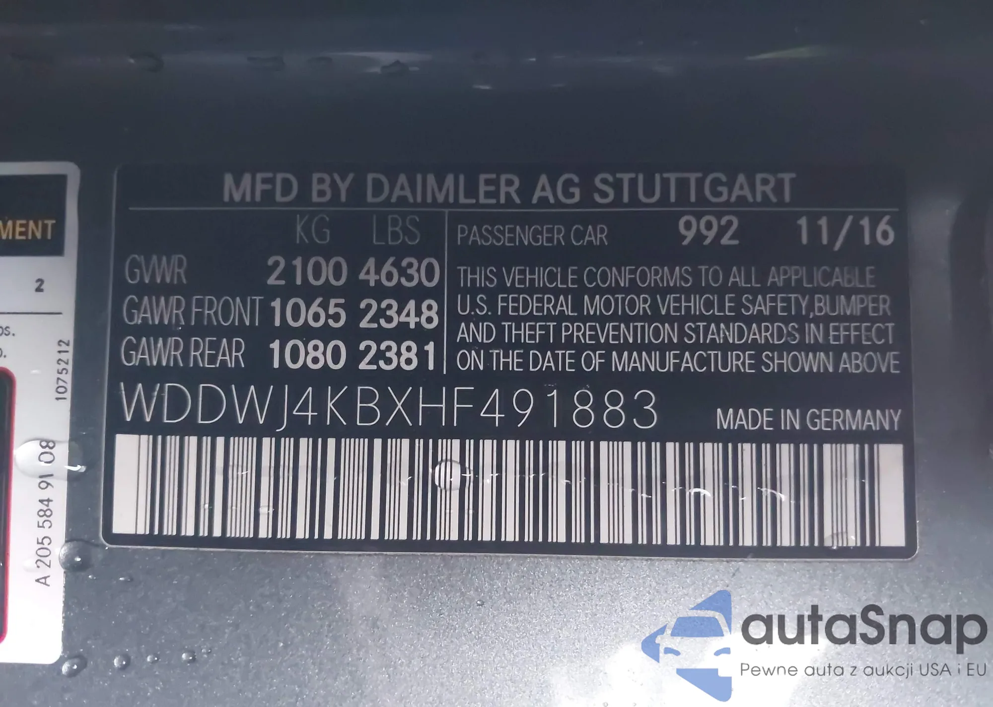 LOT: 43996563 VIN: WDDWJ4KBXHF491883