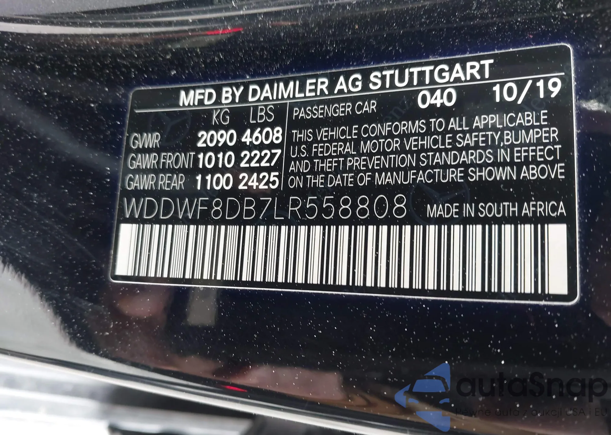 LOT: 44327318 VIN: WDDWF8DB7LR558808