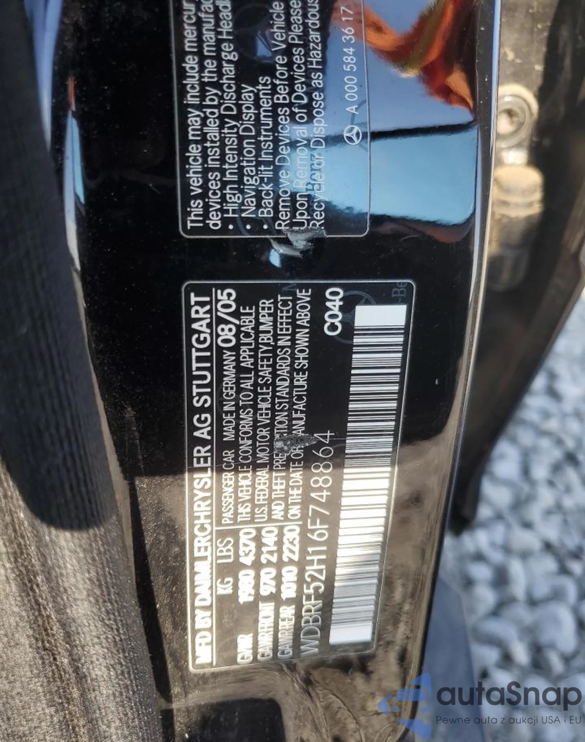 LOT: 81154175 VIN: WDBRF52H16F748864