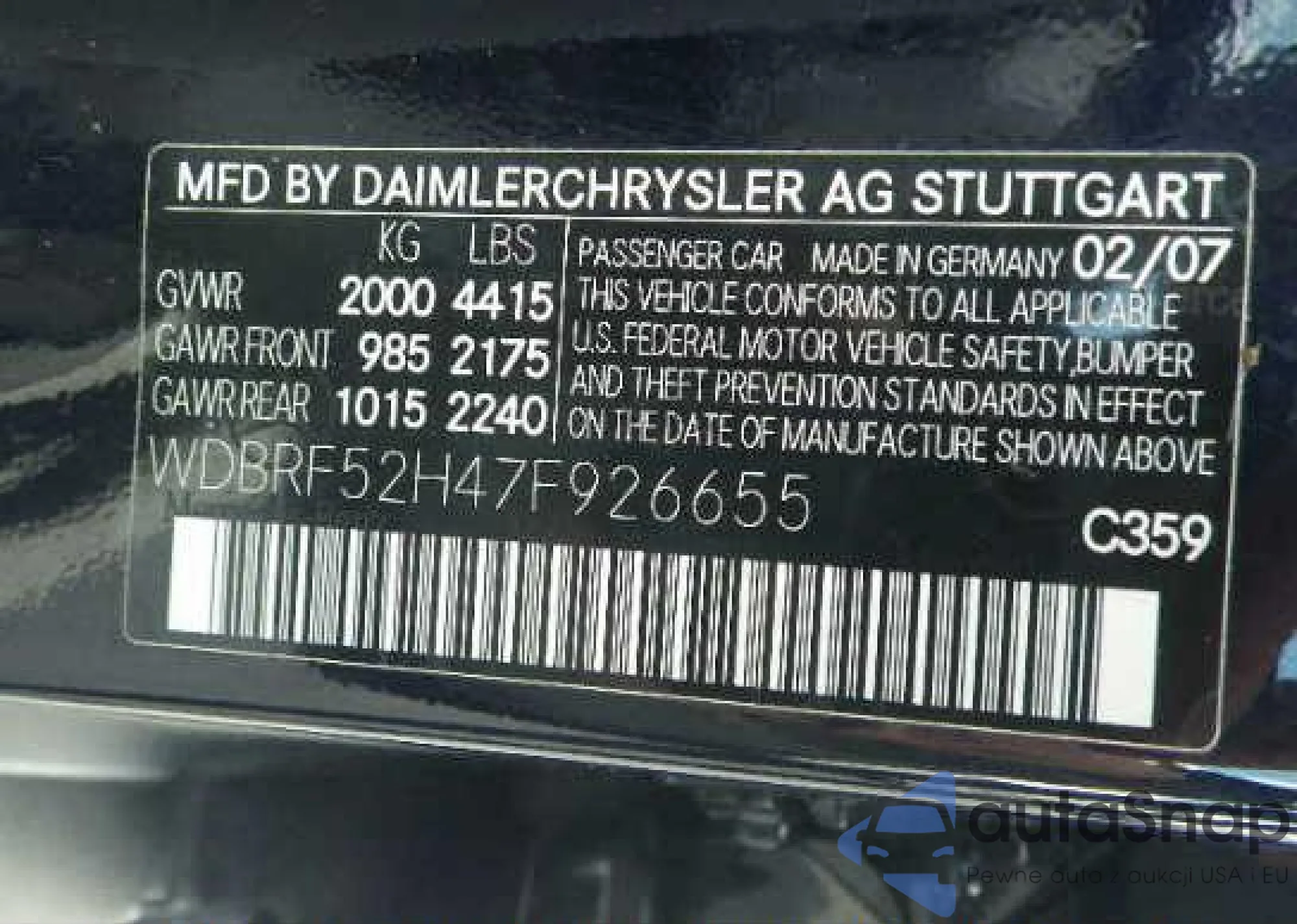 • VIN WDBRF52H47F926655